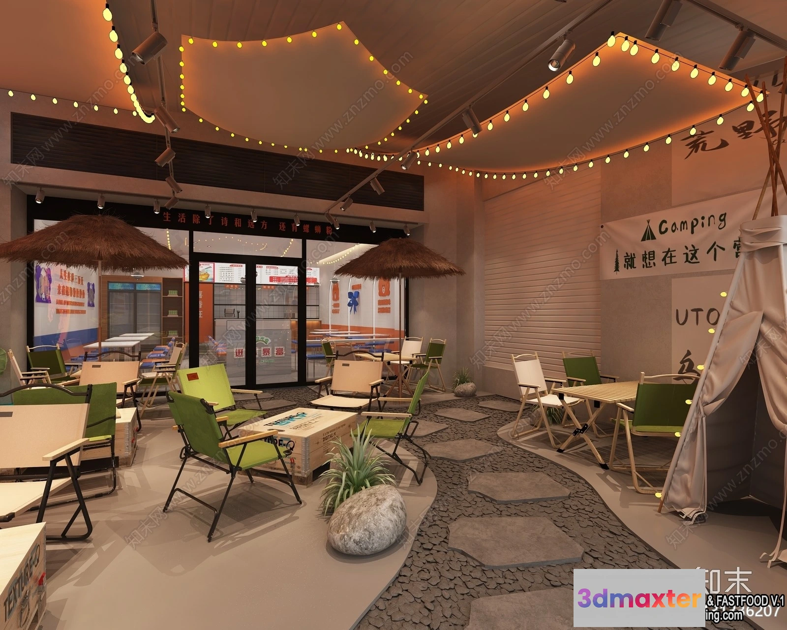 3D Models / 3D Scenes / Interior / Garden Coffee Shop – Fastfood – 3D Models – 043 3D Max