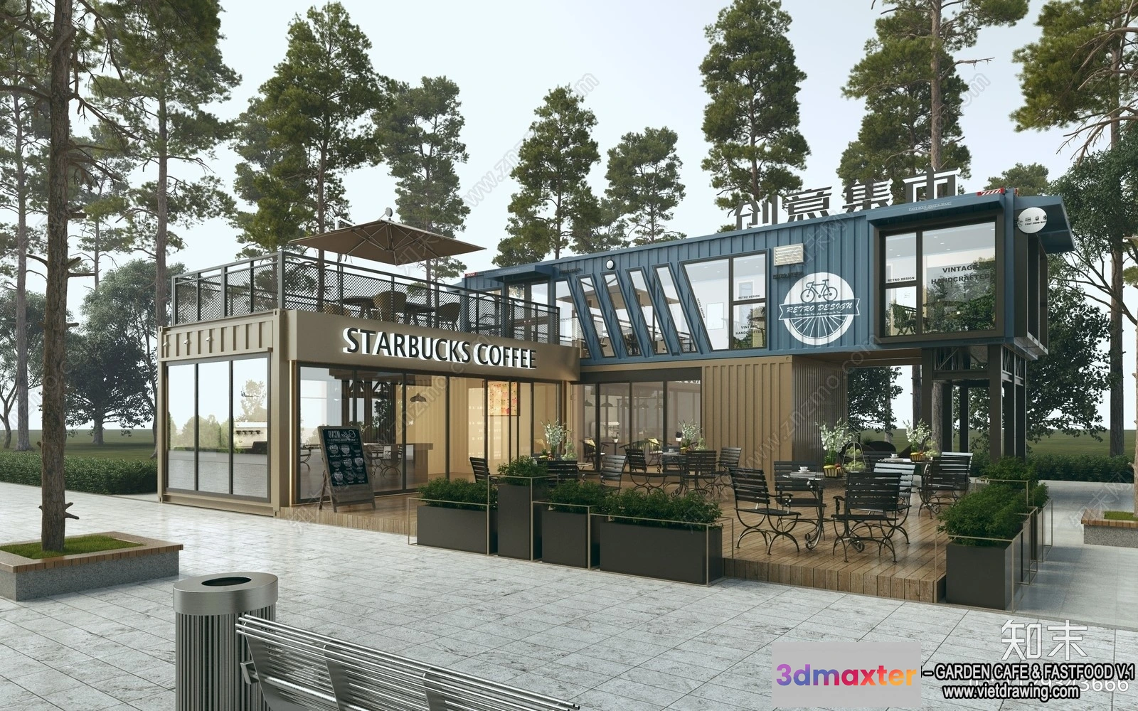 3D Models / 3D Scenes / Interior / Garden Coffee Shop – Fastfood – 3D Models – 045 3D Max