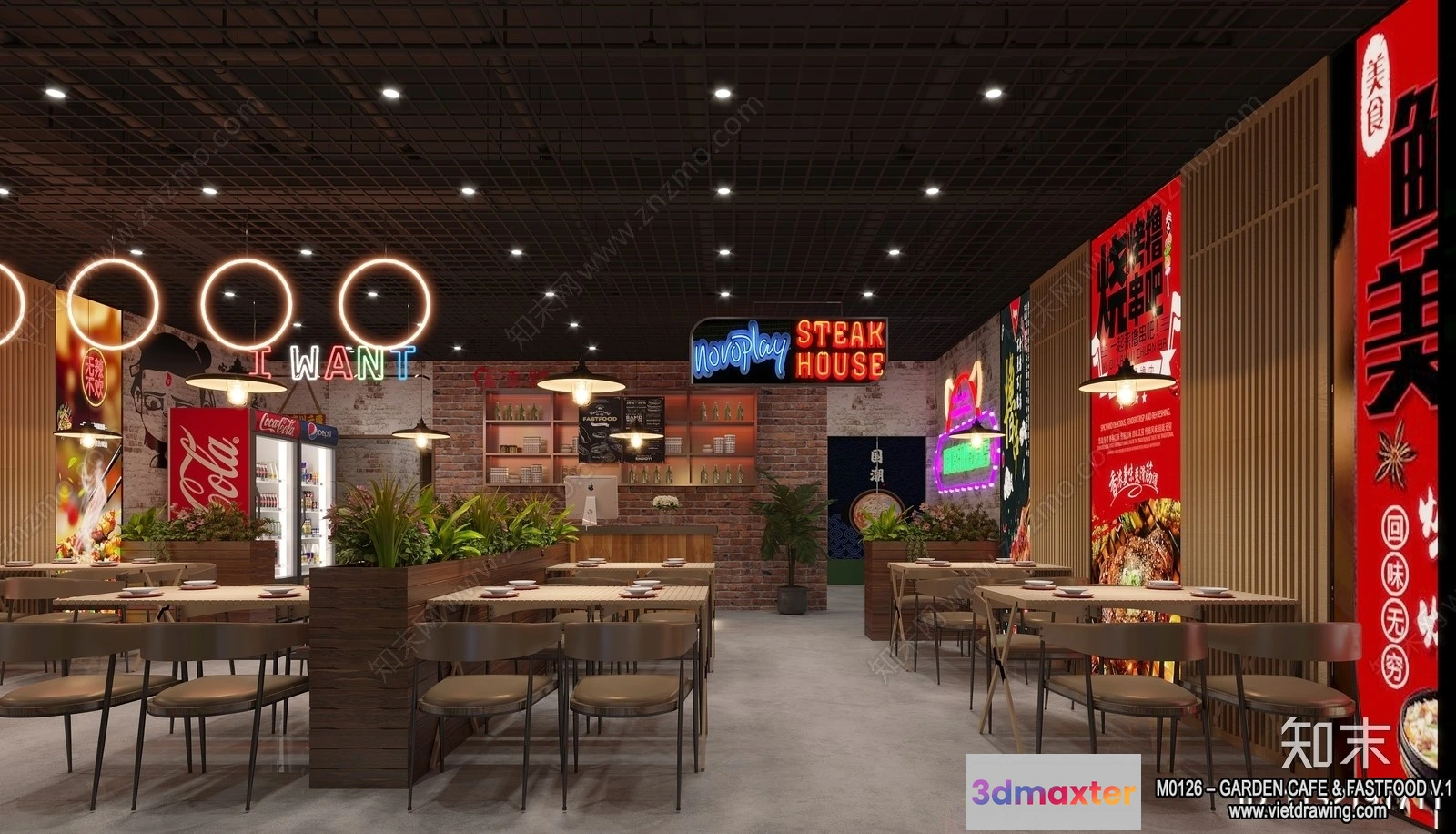 3D Models / 3D Scenes / Interior / Garden Coffee Shop – Fastfood – 3D Models – 051 3D Max