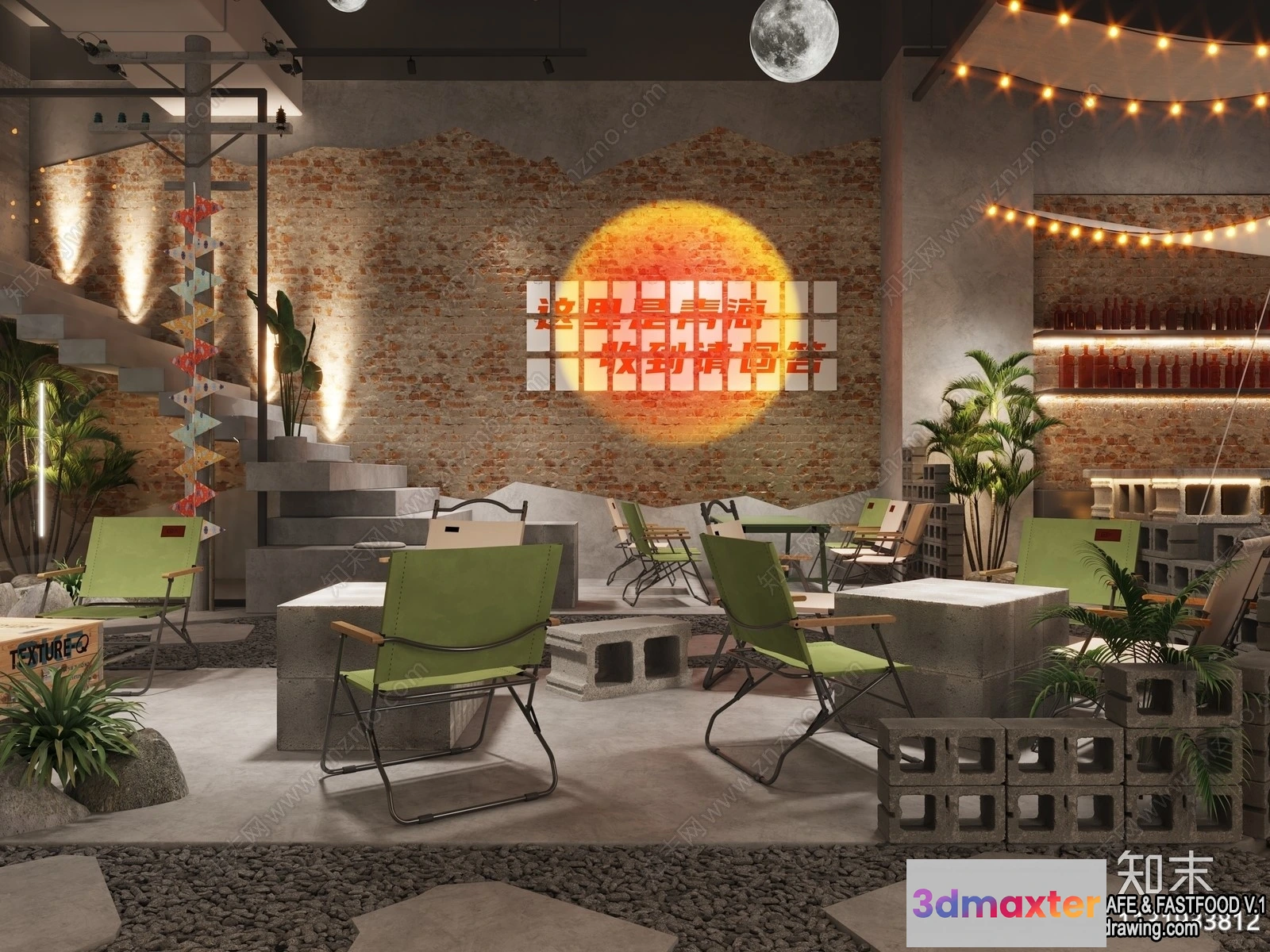3D Models / 3D Scenes / Interior / Garden Coffee Shop – Fastfood – 3D Models – 061 3D Max