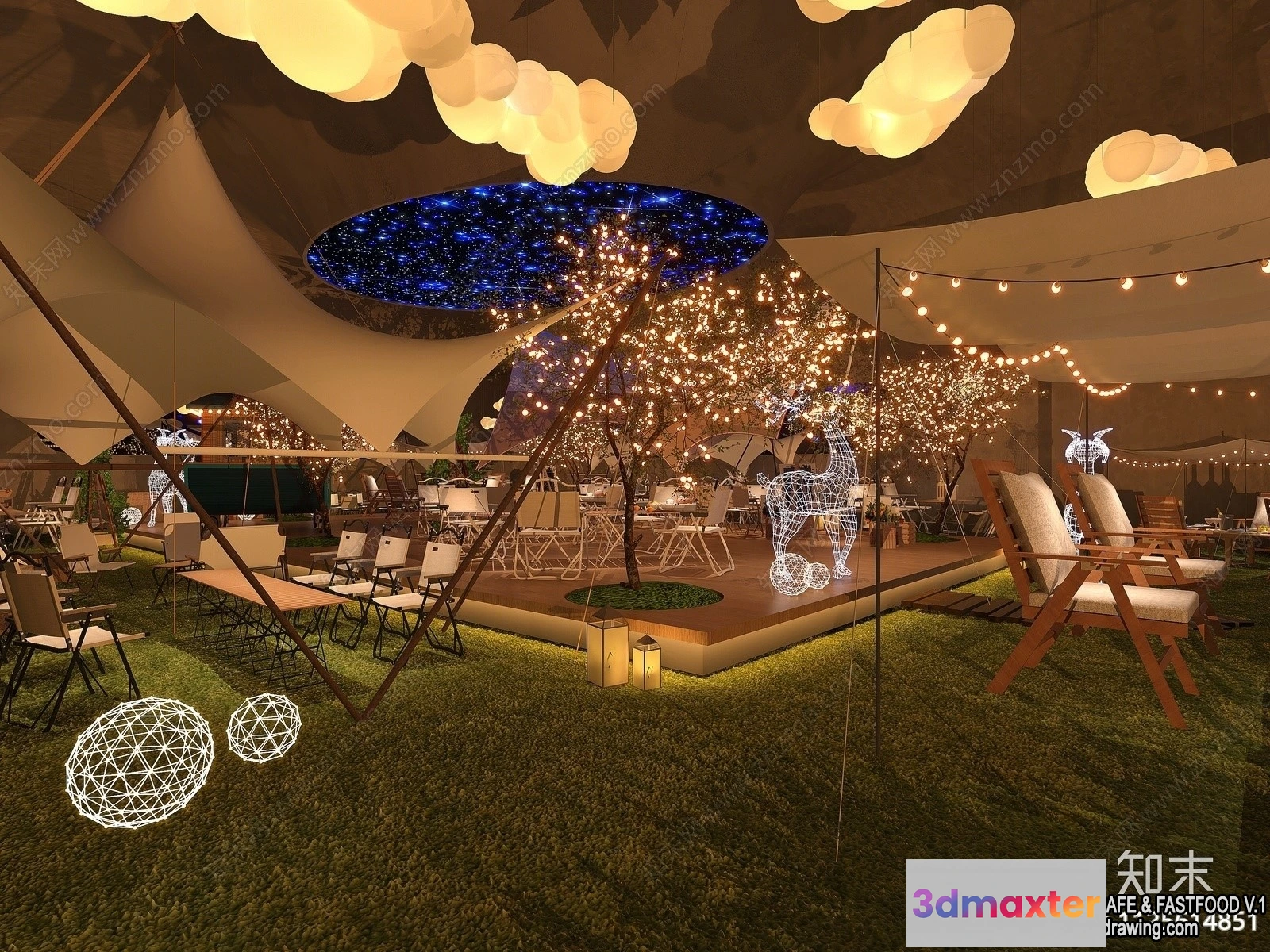 3D Models / 3D Scenes / Interior / Garden Coffee Shop – Fastfood – 3D Models – 064 3D Max