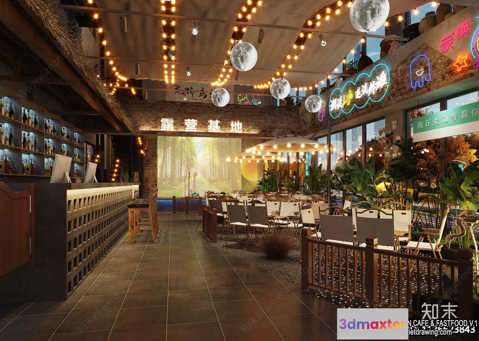 3D Models / 3D Scenes / Interior / Garden Coffee Shop – Fastfood – 3D Models – 066 3D Max