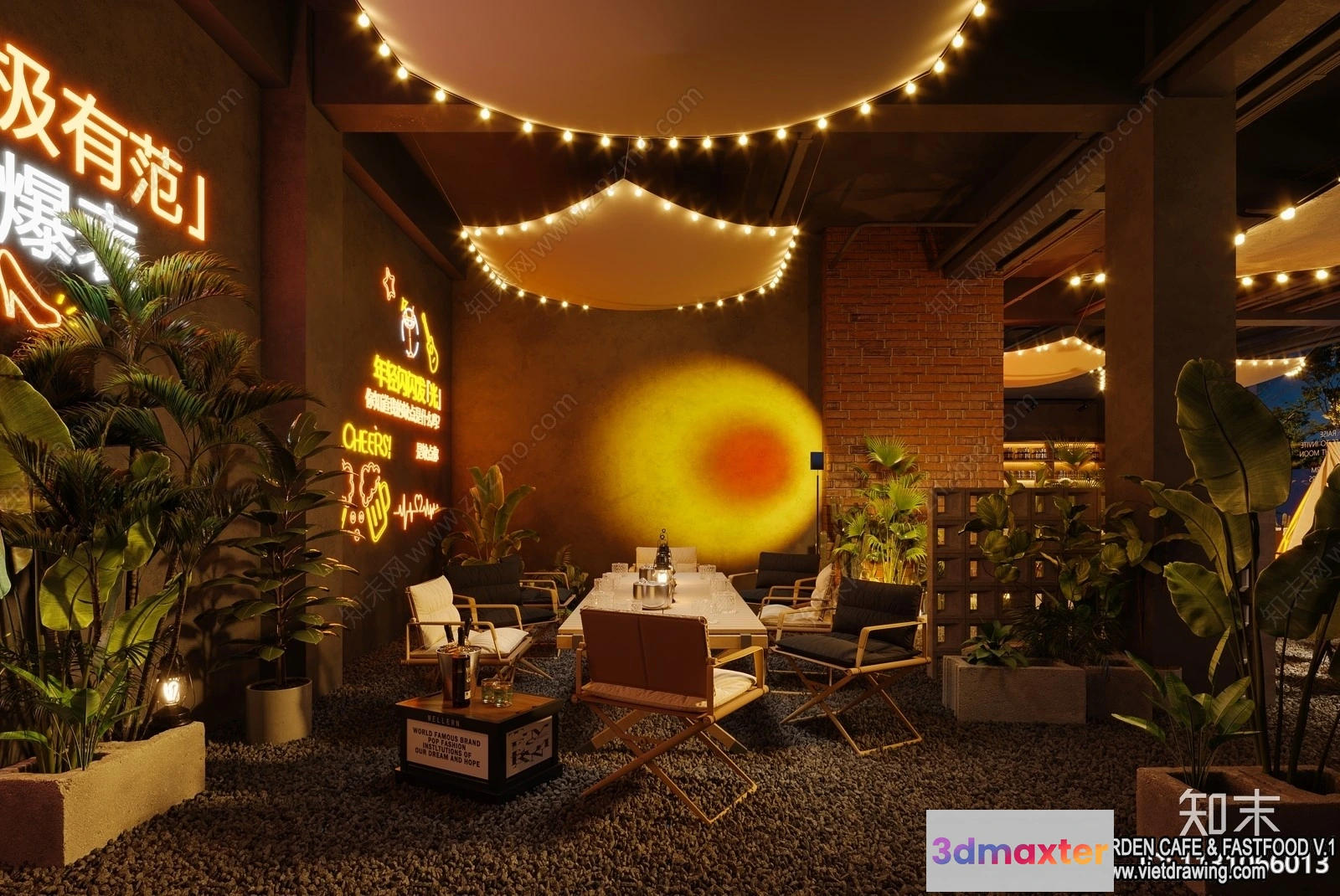 3D Models / 3D Scenes / Interior / Garden Coffee Shop – Fastfood – 3D Models – 069 3D Max