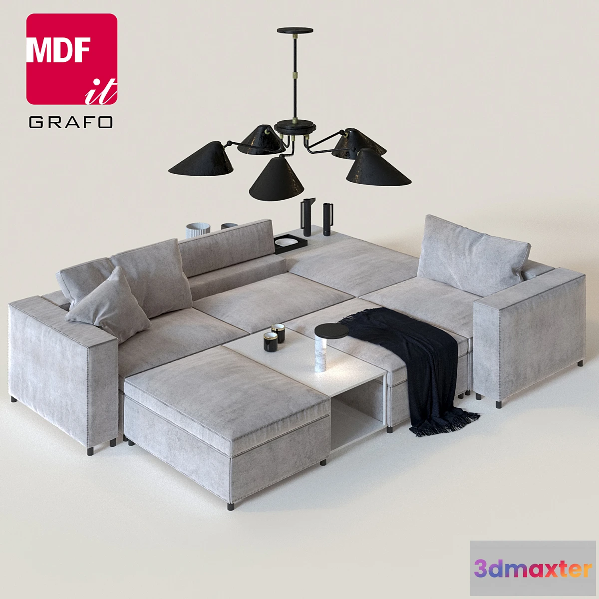 Modular sofa Grafo from the Italian brand MDF Italia. From this model you can conveniently assemble any configuration (all grouped by the elements of the sofa). To save space several seat modules have been removed which can be obtained by fast copying and modifying the ffdbox (the dimensions are indicated by the usual box). Ties on the sofa are geometry for saving the polygon they can be removed.