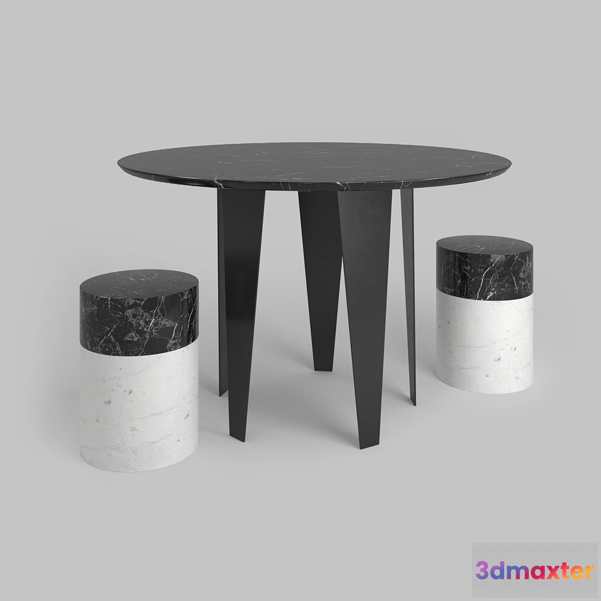3D Models / Furniture / Table and Chair / Grafton dining table and minimalist stool from kelly wearstler