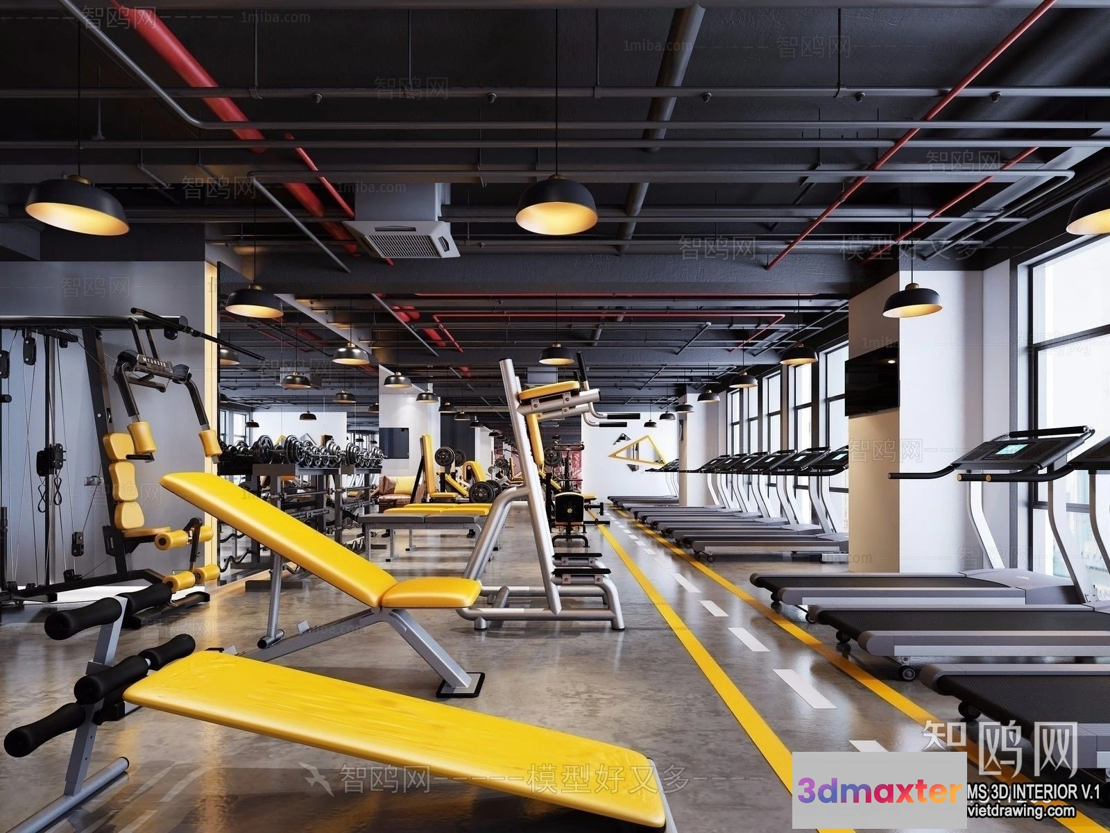 3D Models / 3D Scenes / Interior / Commercial Spaces / GYM – 3D Interior Scene – 3D Models – 100 3D Max