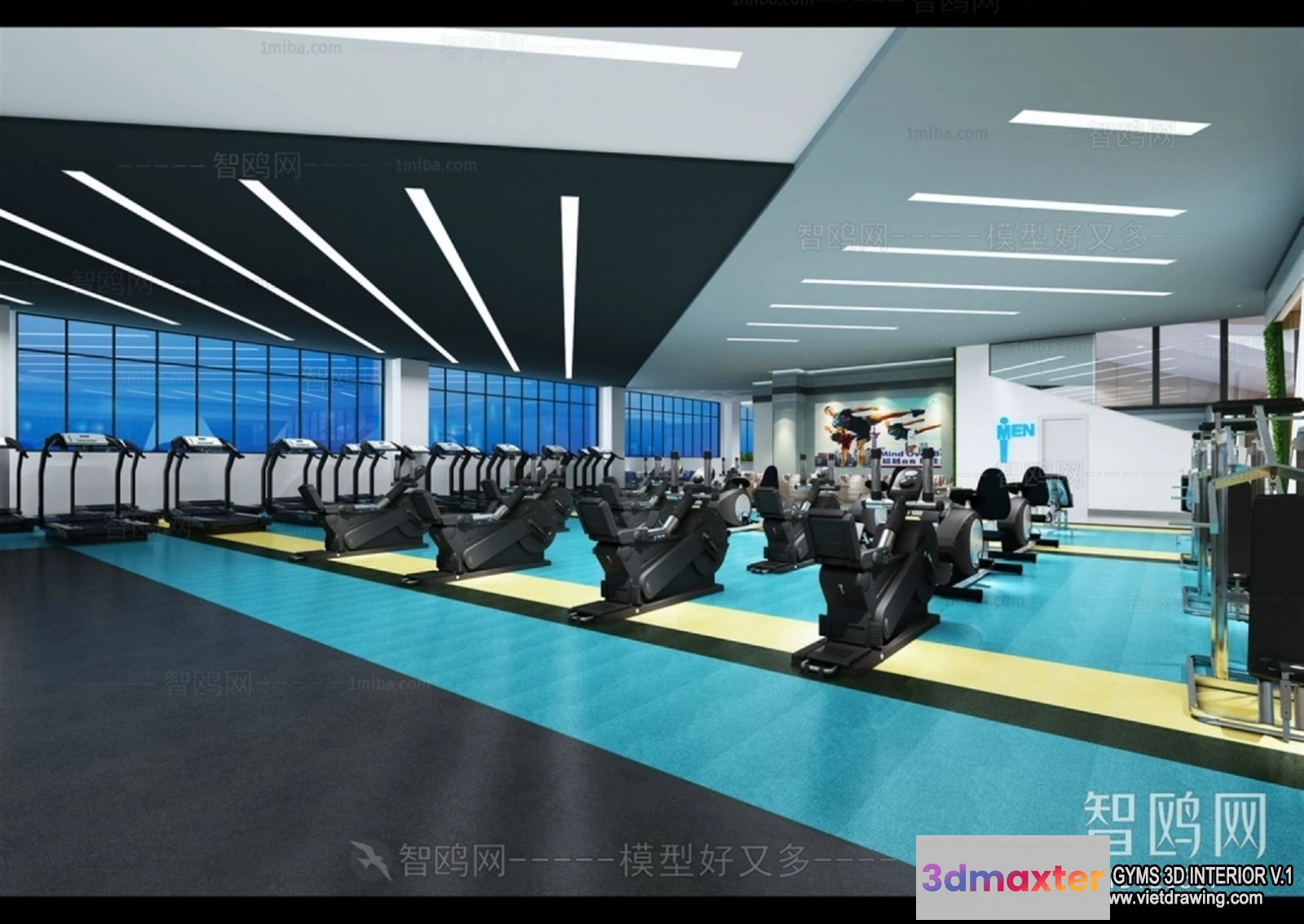 3D Models / 3D Scenes / Interior / Commercial Spaces / GYM – 3D Interior Scene – 3D Models – 105 3D Max