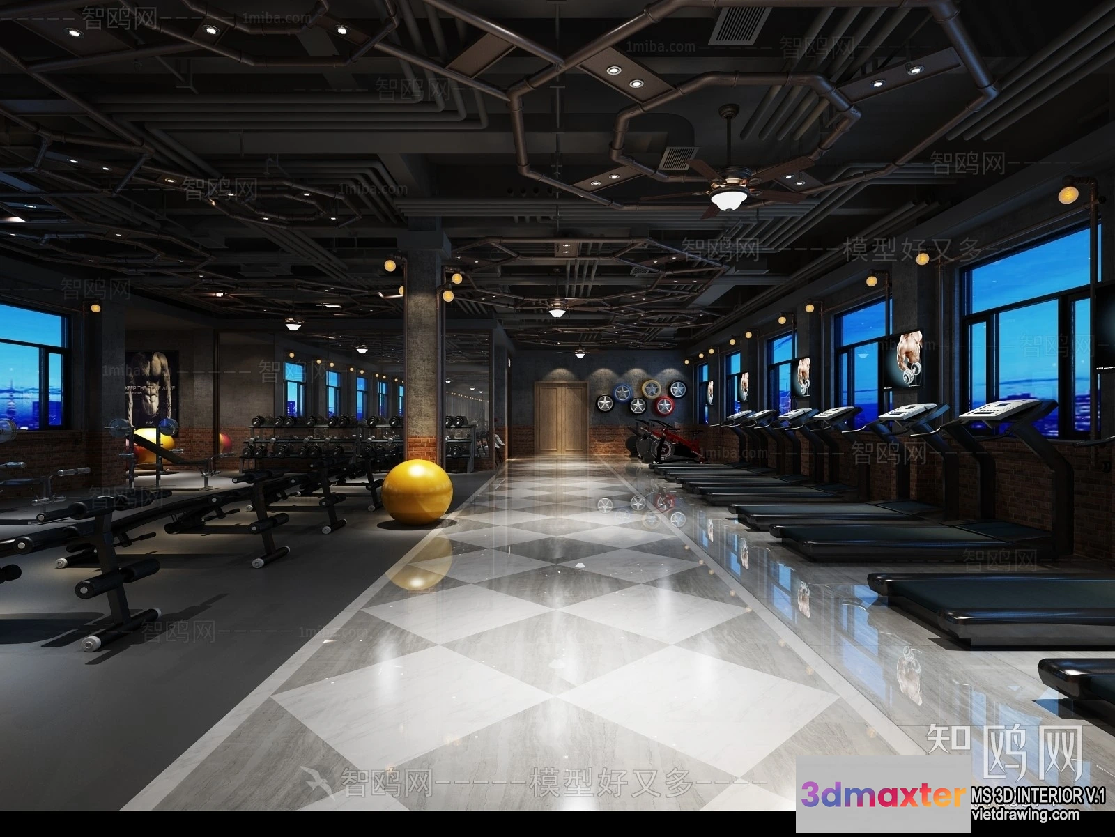 3D Models / 3D Scenes / Interior / Commercial Spaces / GYM – 3D Interior Scene – 3D Models – 118 3D Max