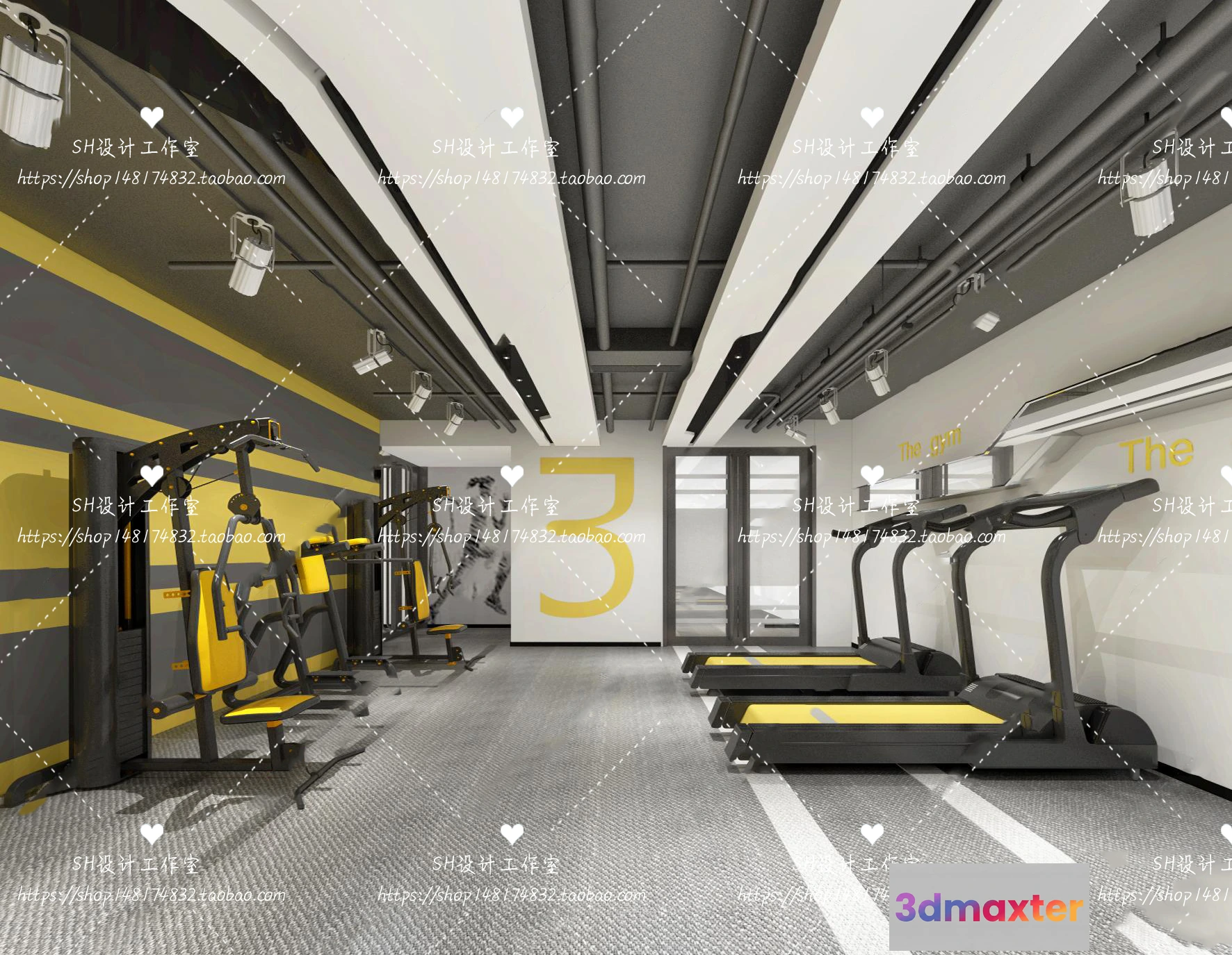 3D Models / 3D Scenes / Interior / Commercial Spaces / GYM AND YOGA 3D SCENES – VRAY RENDER – 008