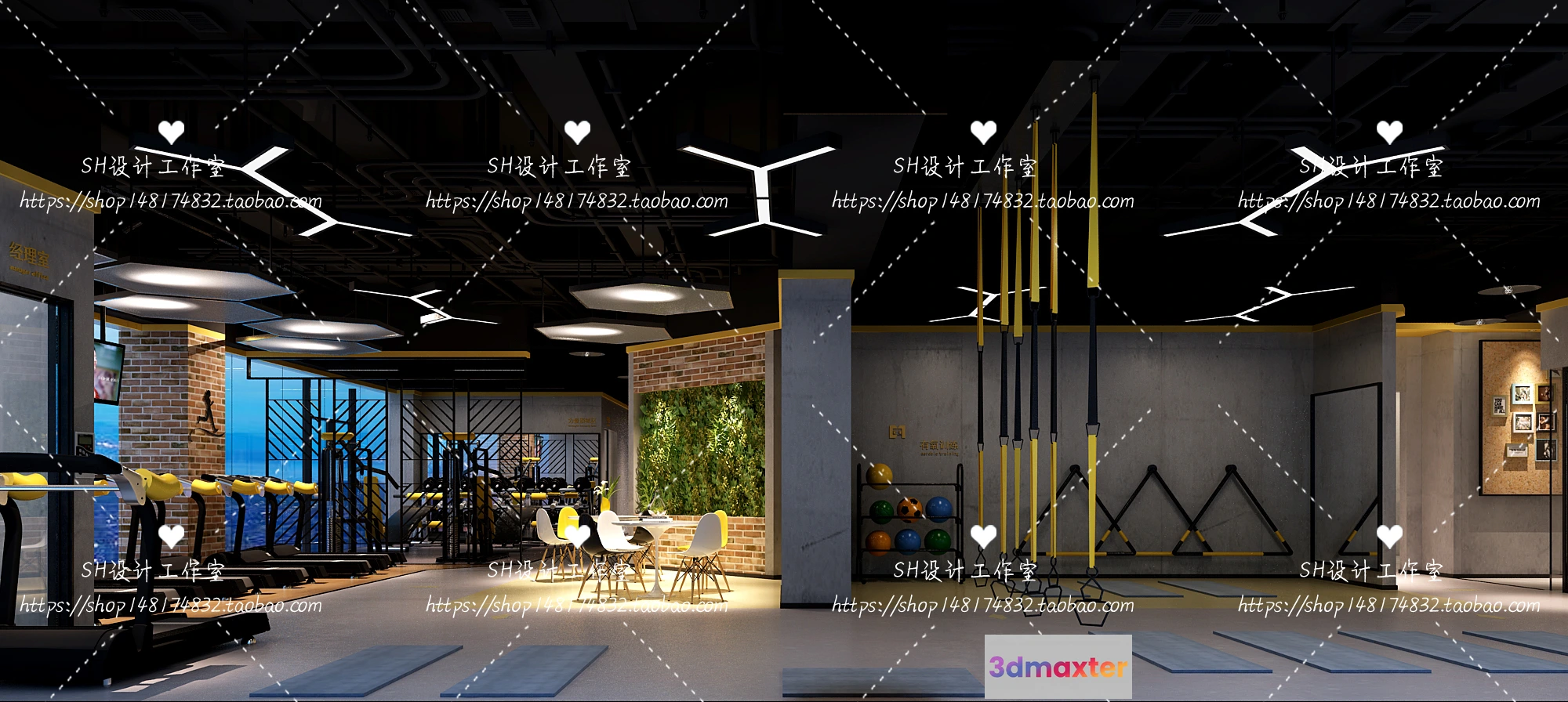 3D Models / 3D Scenes / Interior / Commercial Spaces / GYM AND YOGA 3D SCENES – VRAY RENDER – 011