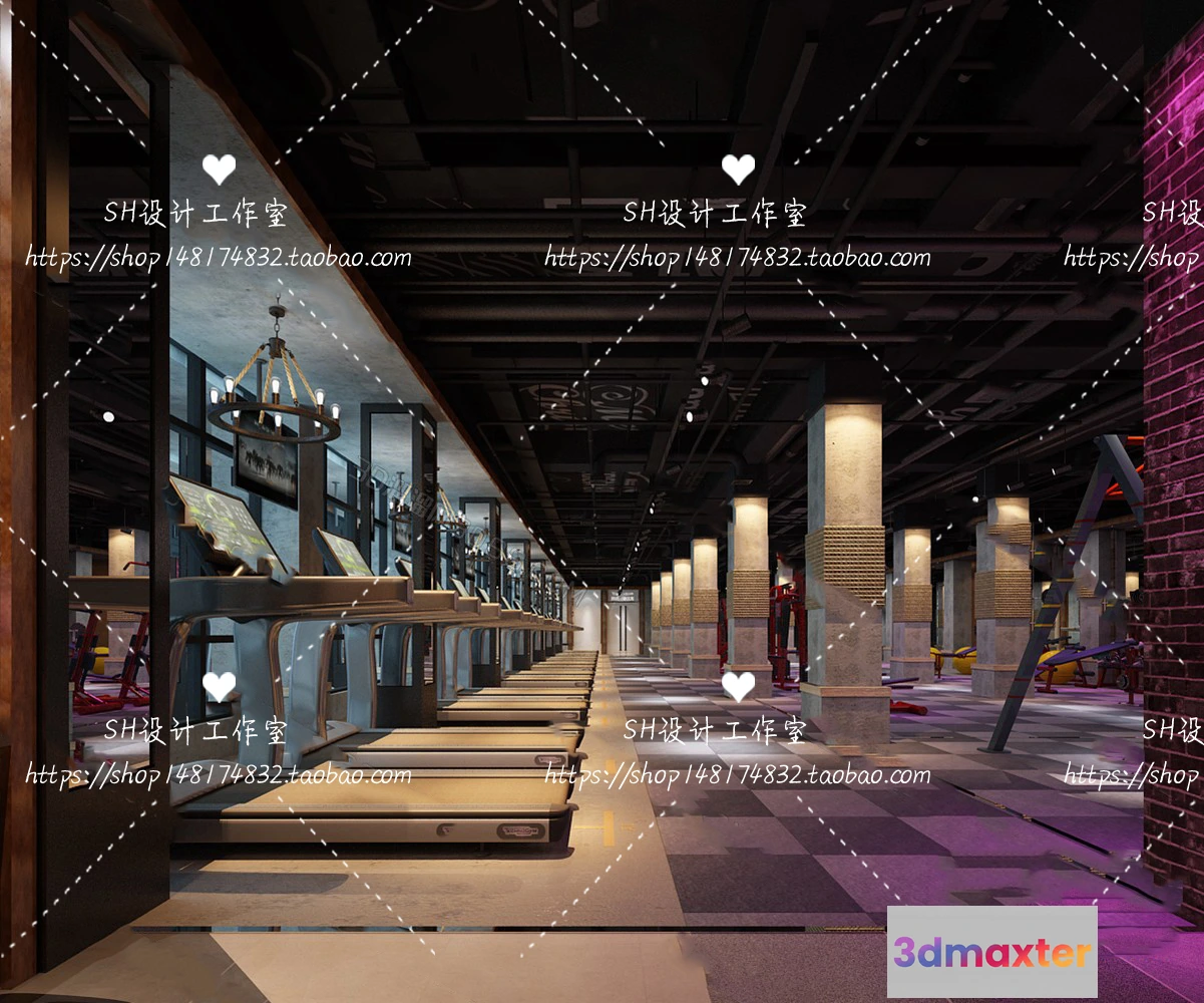 3D Models / 3D Scenes / Interior / Commercial Spaces / GYM AND YOGA 3D SCENES – VRAY RENDER – 015