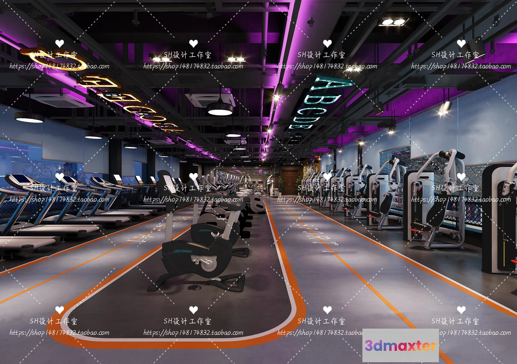 3D Models / 3D Scenes / Interior / Commercial Spaces / GYM AND YOGA 3D SCENES – VRAY RENDER – 024