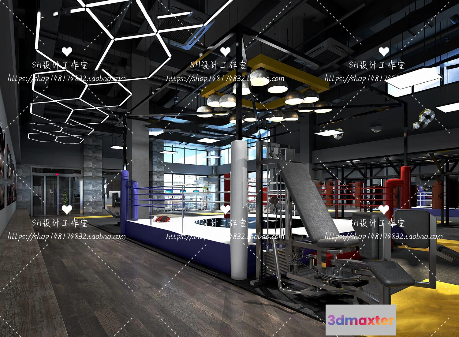 3D Models / 3D Scenes / Interior / Commercial Spaces / GYM AND YOGA 3D SCENES – VRAY RENDER – 029