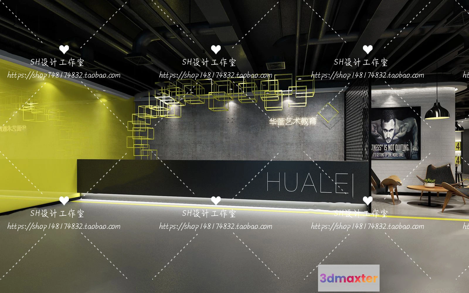 3D Models / 3D Scenes / Interior / Commercial Spaces / GYM AND YOGA 3D SCENES – VRAY RENDER – 031