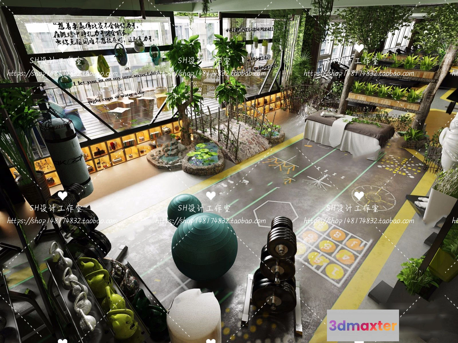 3D Models / 3D Scenes / Interior / Commercial Spaces / GYM AND YOGA 3D SCENES – VRAY RENDER – 036
