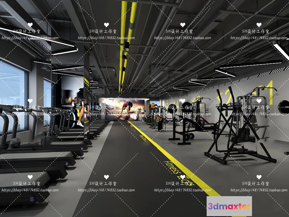 3D Models / 3D Scenes / Interior / Commercial Spaces / GYM AND YOGA 3D SCENES – VRAY RENDER – 037