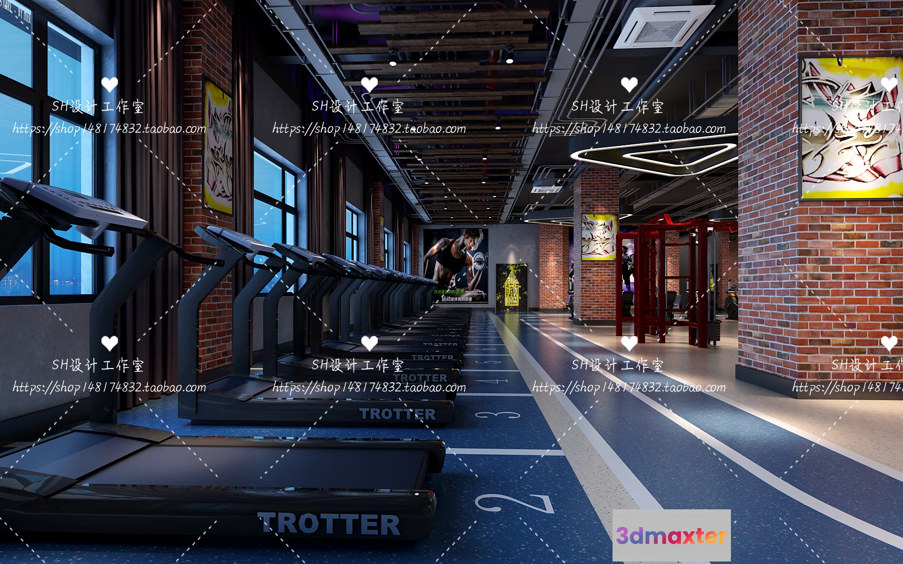 3D Models / 3D Scenes / Interior / Commercial Spaces / GYM AND YOGA 3D SCENES – VRAY RENDER – 049