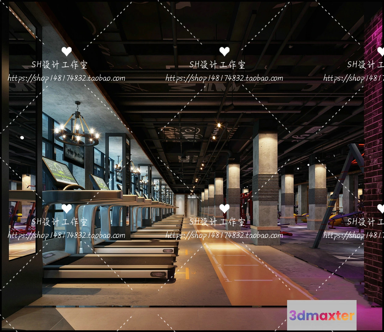 3D Models / 3D Scenes / Interior / Commercial Spaces / GYM AND YOGA 3D SCENES – VRAY RENDER – 059