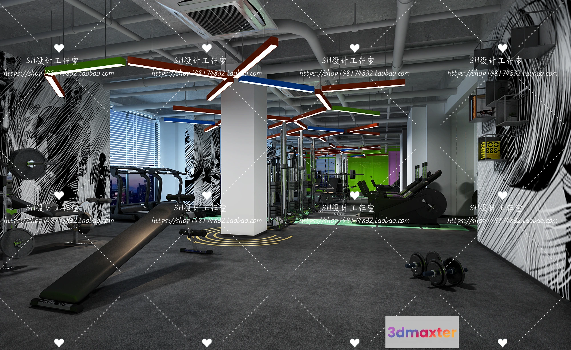 3D Models / 3D Scenes / Interior / Commercial Spaces / GYM AND YOGA 3D SCENES – VRAY RENDER – 062