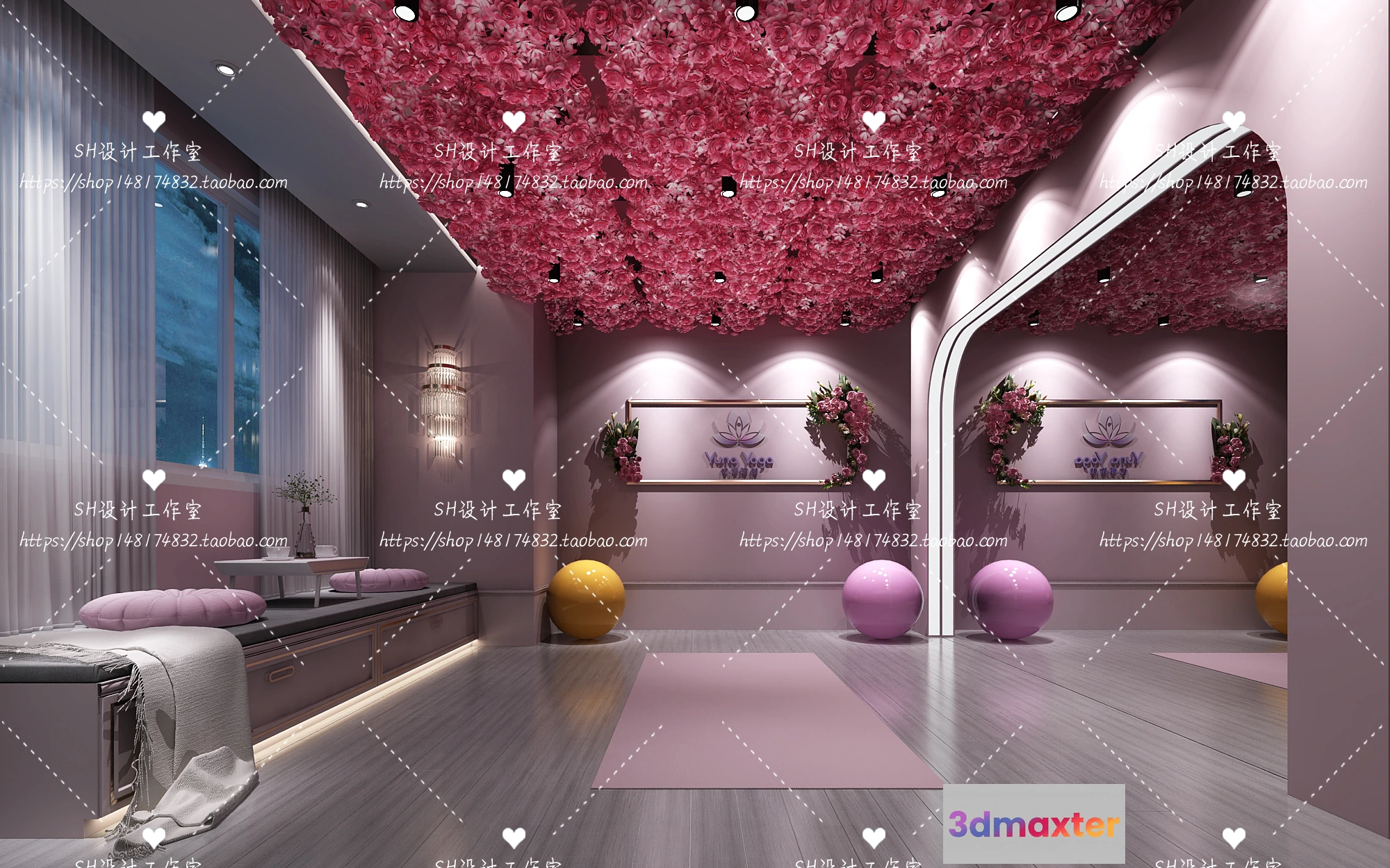 3D Models / 3D Scenes / Interior / Commercial Spaces / GYM AND YOGA 3D SCENES – VRAY RENDER – 069