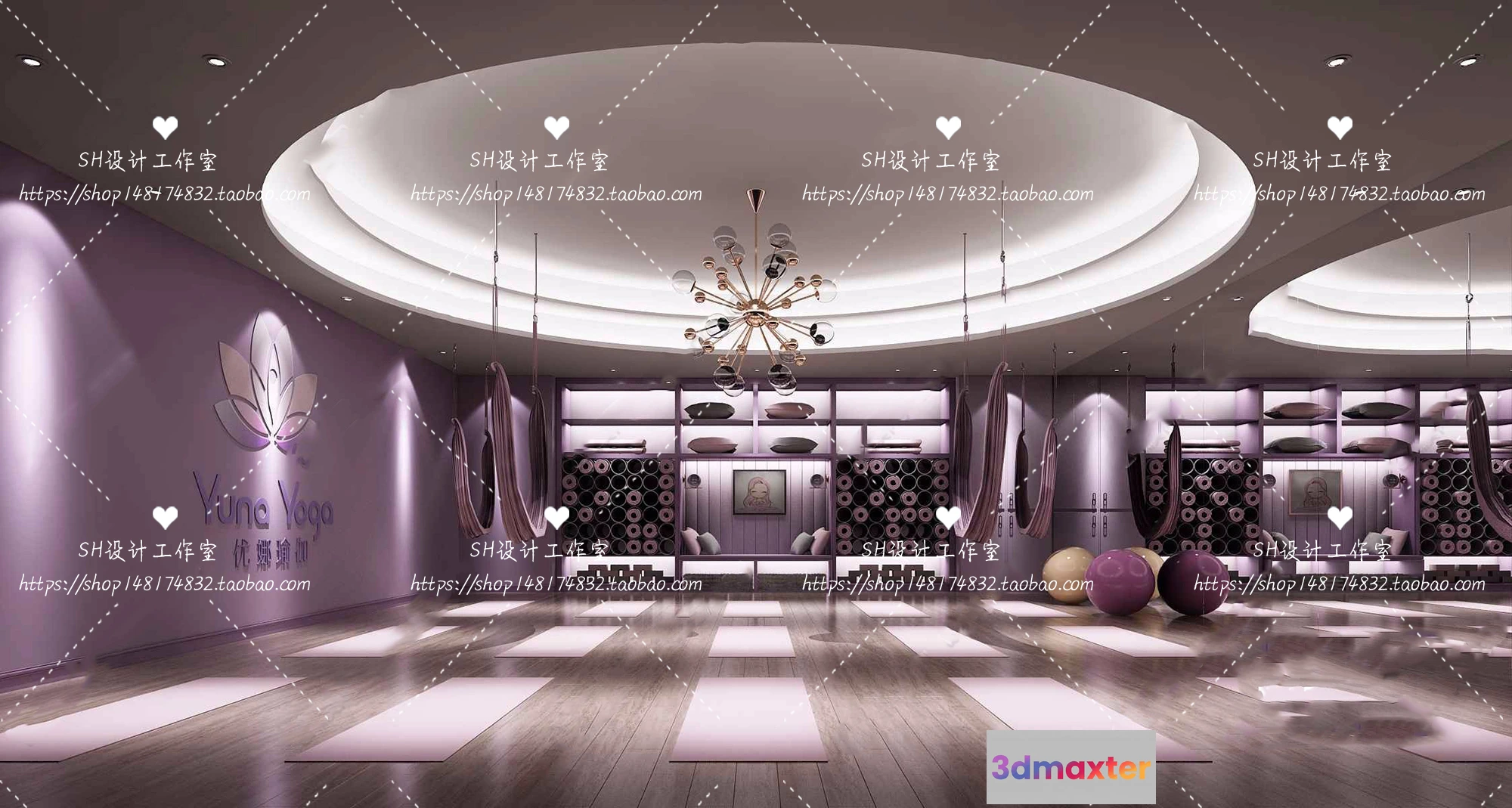 3D Models / 3D Scenes / Interior / Commercial Spaces / GYM AND YOGA 3D SCENES – VRAY RENDER – 072