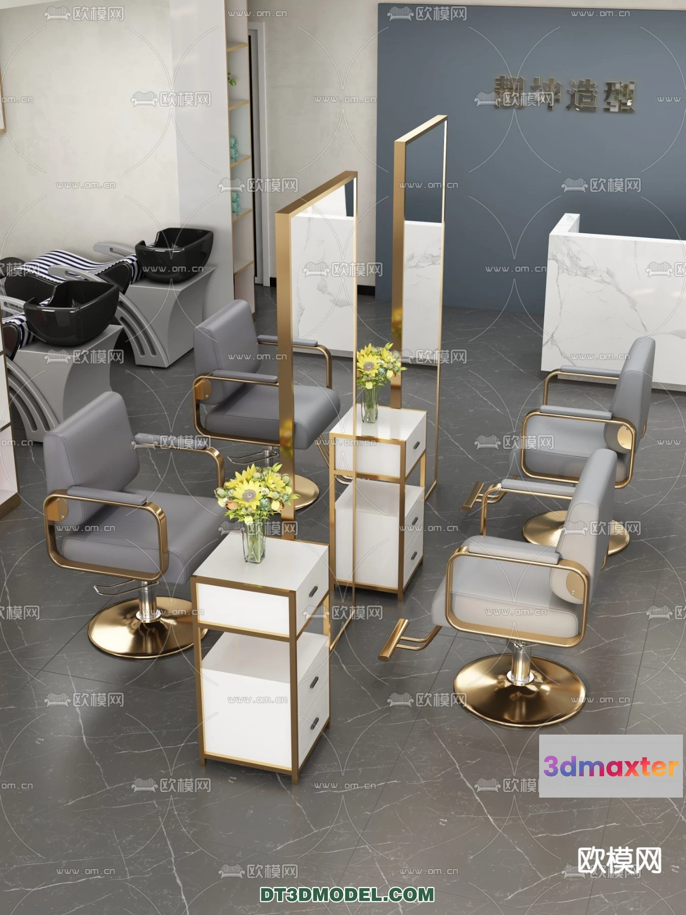 3D Models / 3D Scenes / Interior / Commercial Spaces / Hair Salon – 3D Interior Scene – 034 3D Max