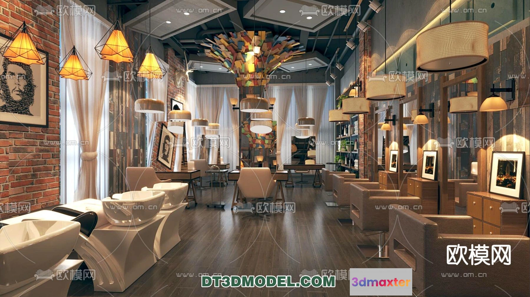 3D Models / 3D Scenes / Interior / Commercial Spaces / Hair Salon – 3D Interior Scene – 071 3D Max