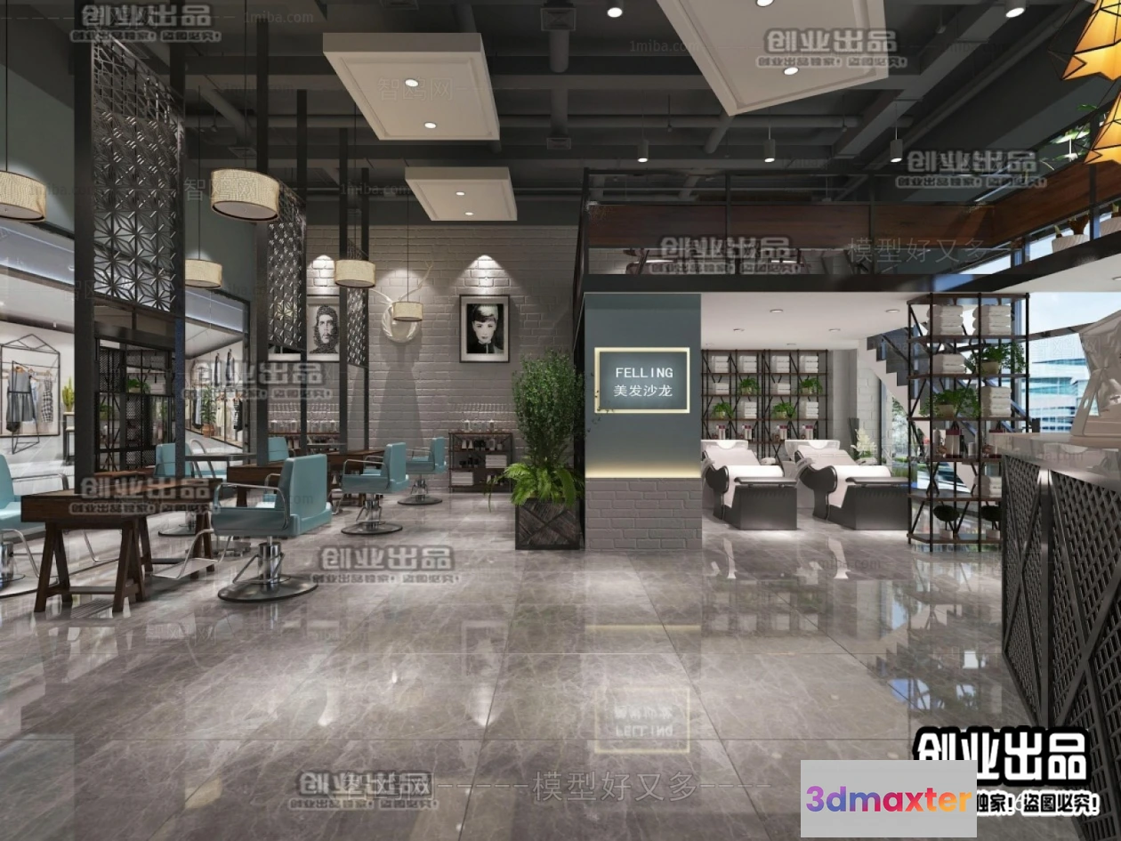 3D Models / 3D Scenes / Interior / Commercial Spaces / HAIR SALON – 3D SCENES – VRAY RENDER – 002