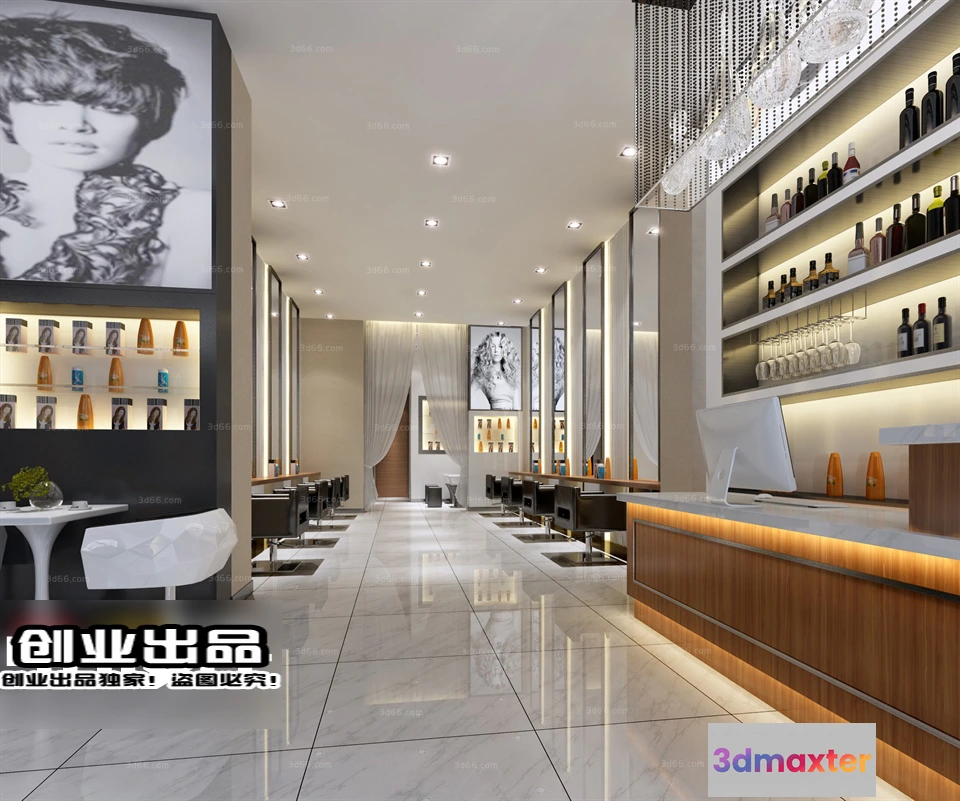 3D Models / 3D Scenes / Interior / Commercial Spaces / HAIR SALON – 3D SCENES – VRAY RENDER – 018