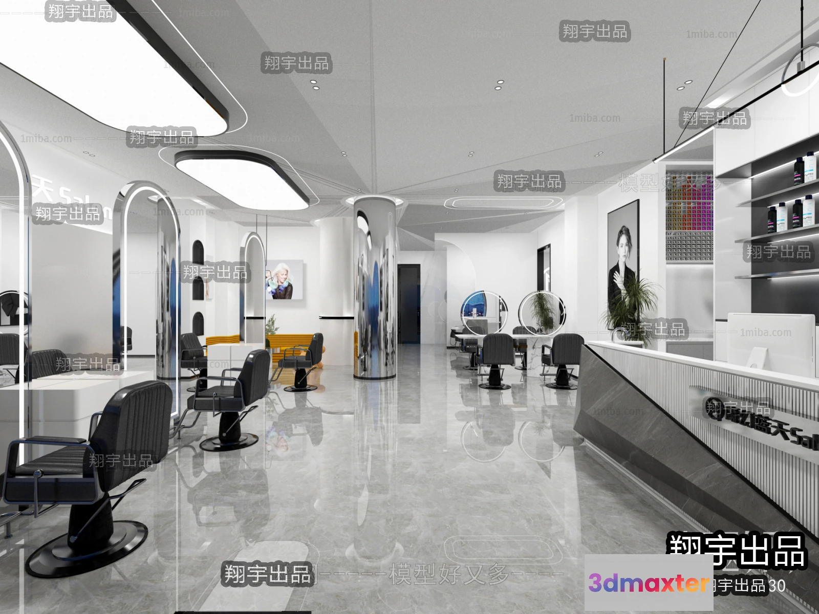 3D Models / 3D Scenes / Interior / Commercial Spaces / HAIR SALON – 3D SCENES – VRAY RENDER – 023