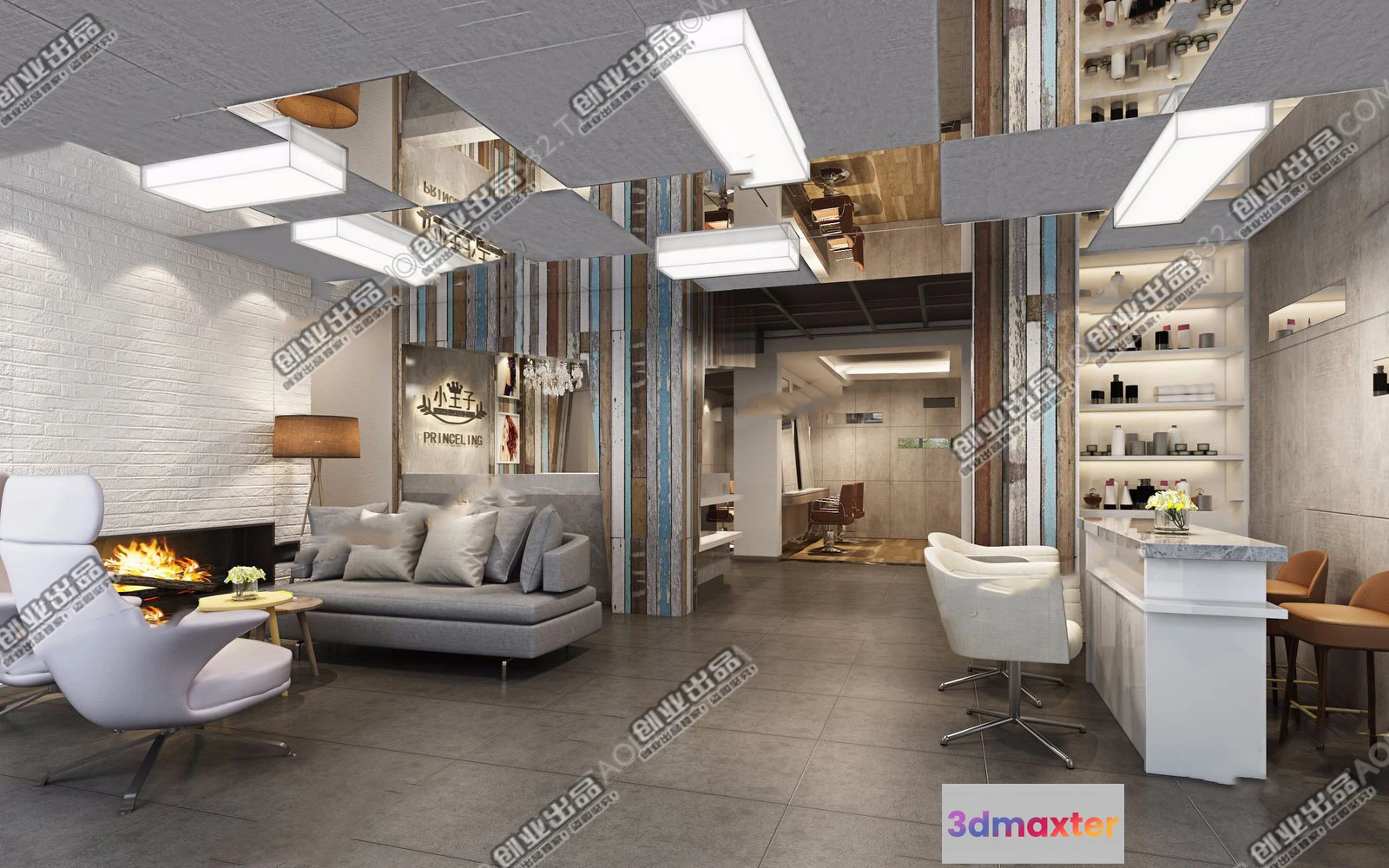 3D Models / 3D Scenes / Interior / Commercial Spaces / HAIR SALON – 3D SCENES – VRAY RENDER – 026