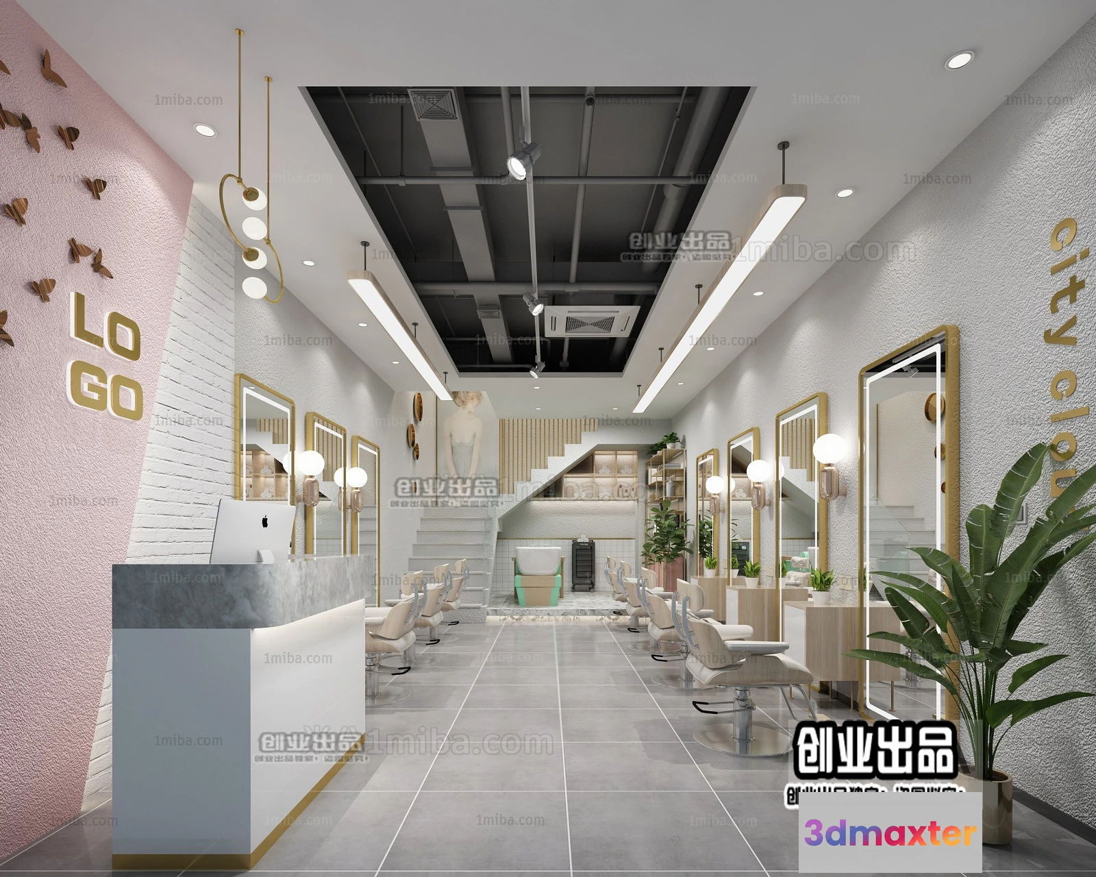 3D Models / 3D Scenes / Interior / Commercial Spaces / HAIR SALON – 3D SCENES – VRAY RENDER – 060