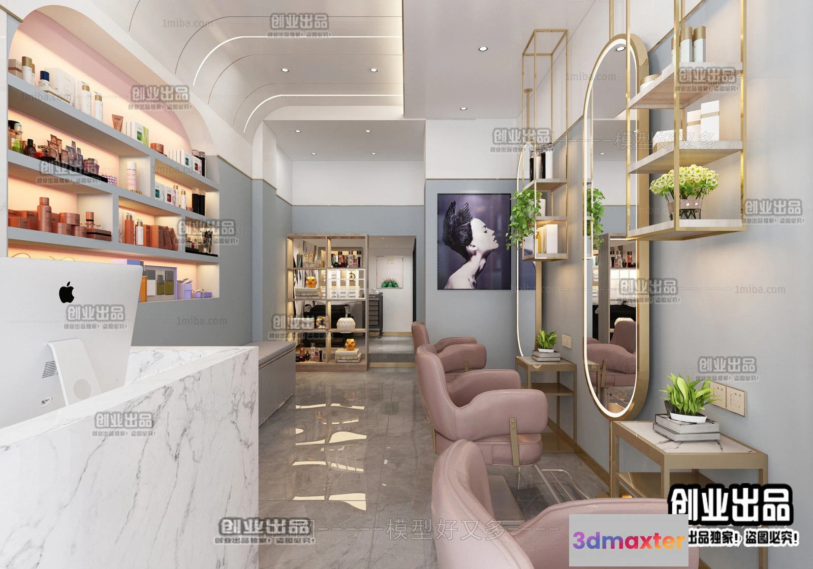 3D Models / 3D Scenes / Interior / Commercial Spaces / HAIR SALON – 3D SCENES – VRAY RENDER – 068