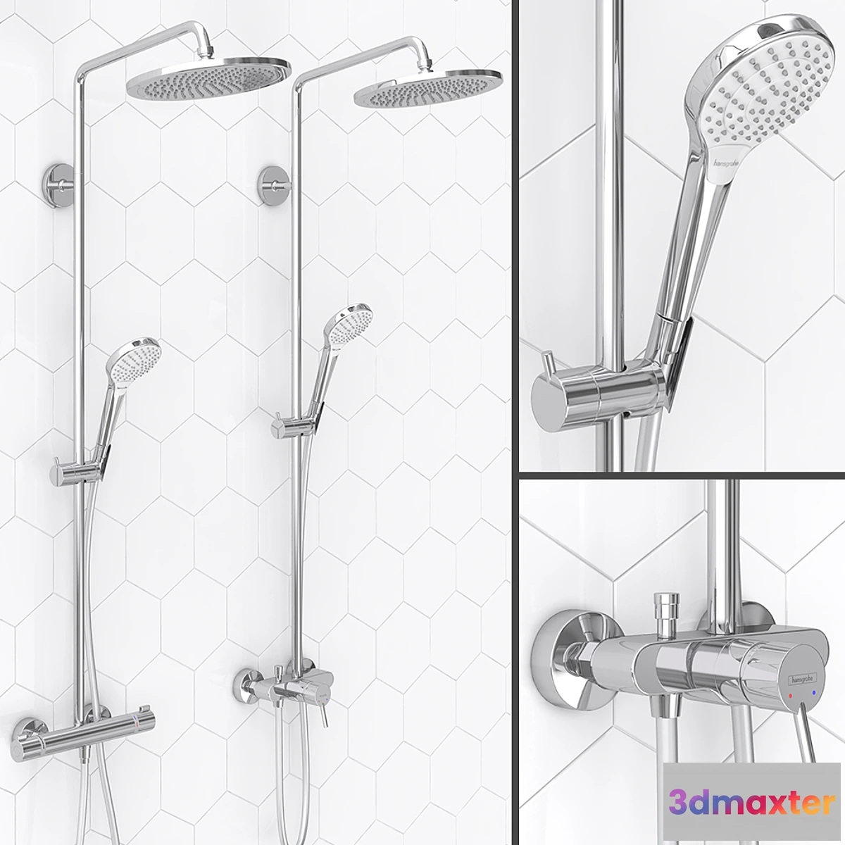 In the archive: – A set of shower systems HANSGROHE 1) Croma Select S Showerpipe 280 1jet with thermostat