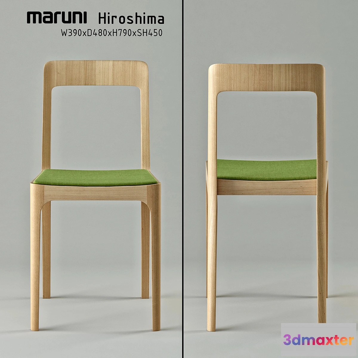 Dining chair Hiroshima Maruni by Naoto Fukasawa. Dimensions: W390xD480xH790xSH450 (mm) Reference: http://www.informinteriors.com/blog/2010/staff-picks/new-from-maruni-wood/