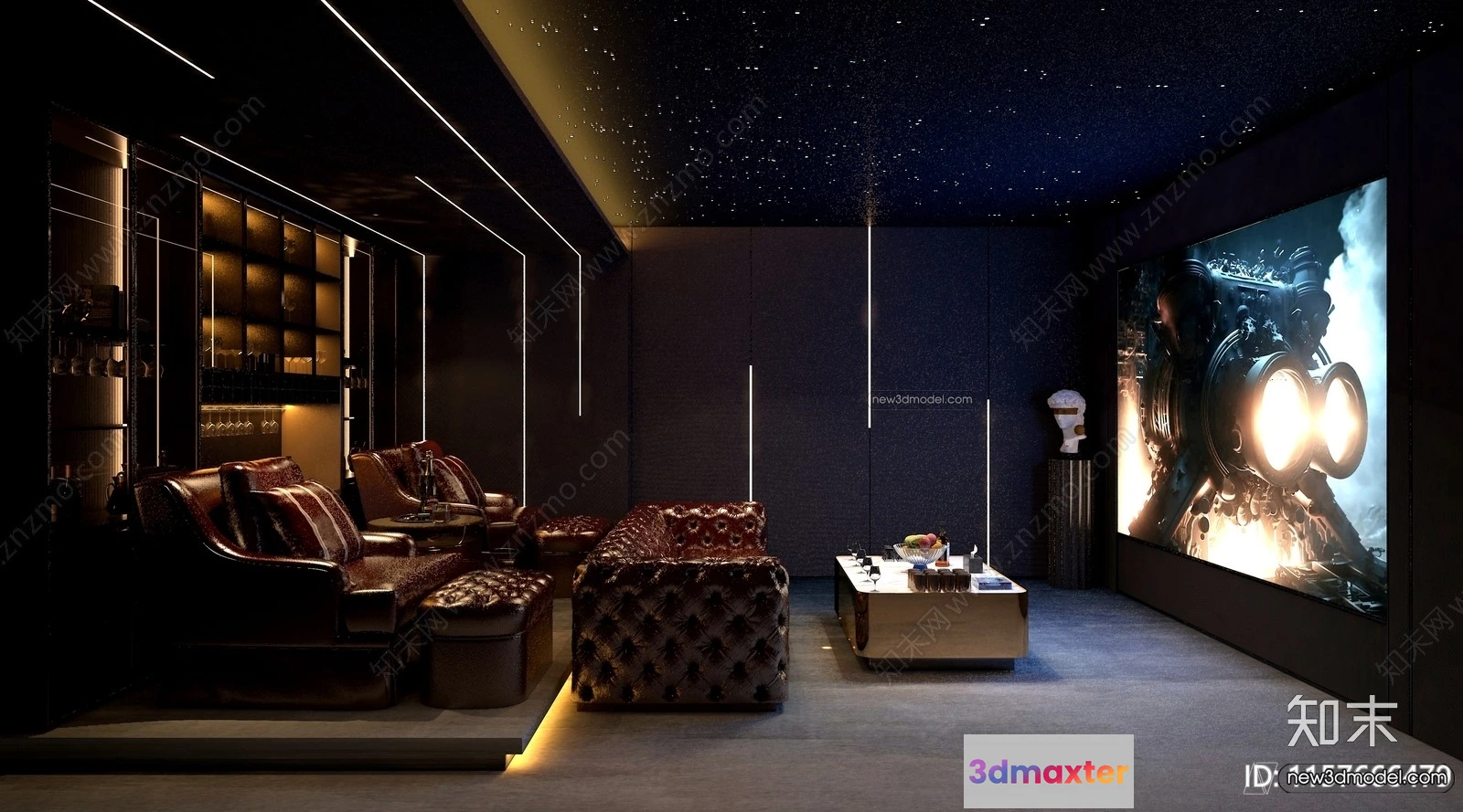 - Name: Home Theater – 3D Interior Scene – 3D Models – 100