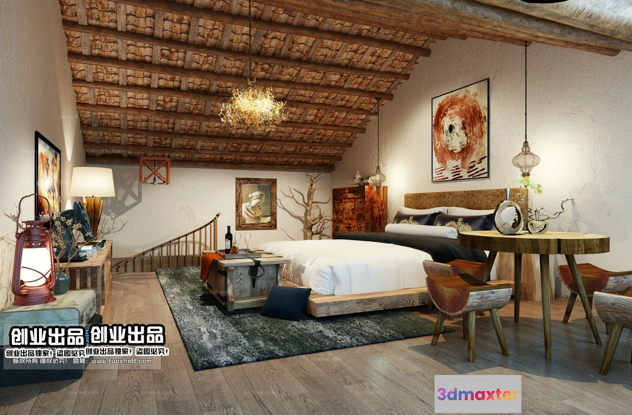 3D Models / 3D Scenes / Interior / Commercial Spaces / Homestay 3D Interior Scene – 3D Models – 015 3D Max
