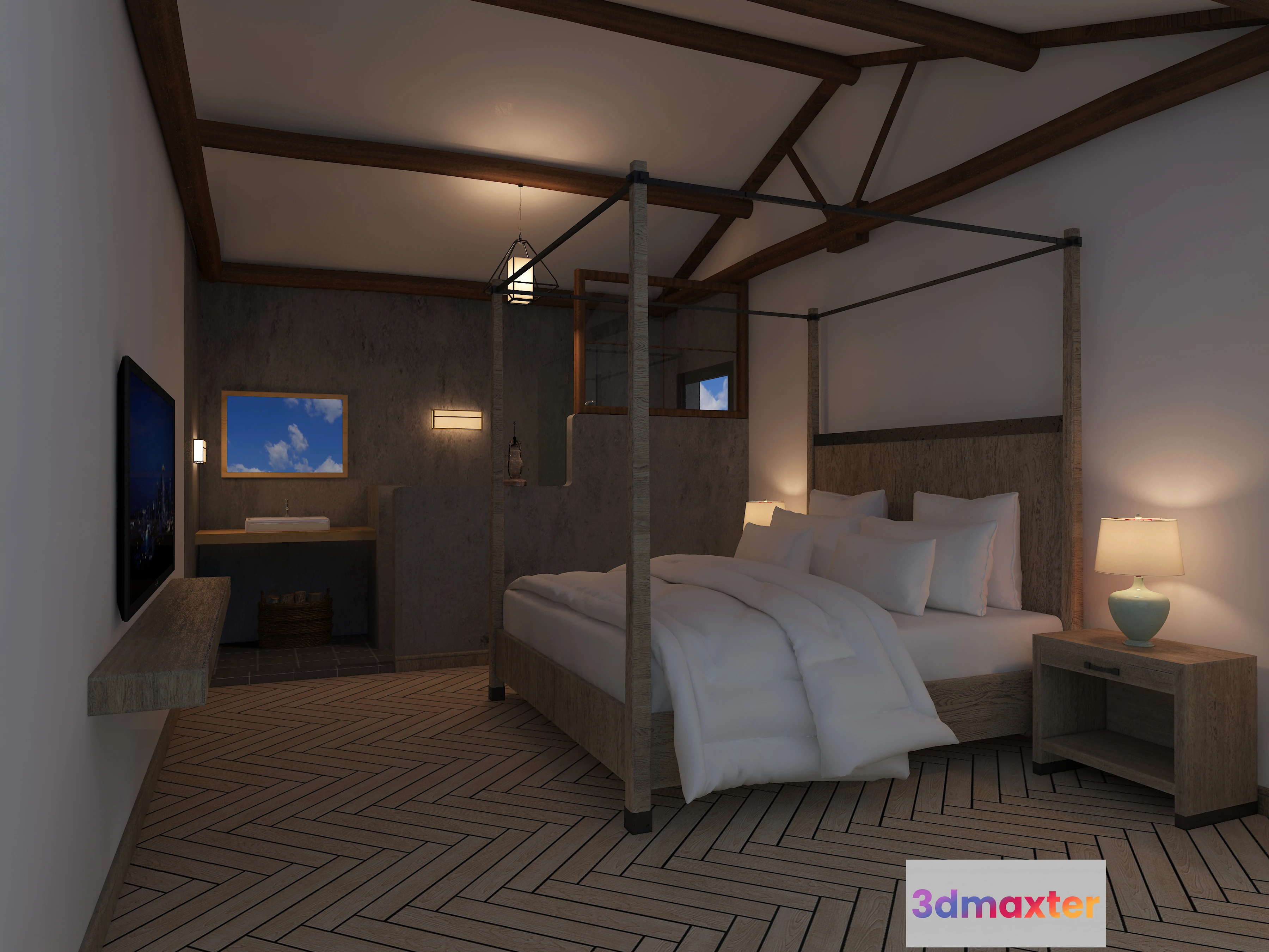 3D Models / 3D Scenes / Interior / Commercial Spaces / Homestay 3D Interior Scene – 3D Models – 068 3D Max