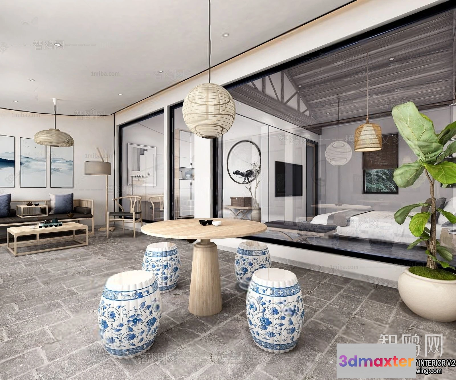 3D Models / 3D Scenes / Interior / Commercial Spaces / Homestay 3D Interior Scene – 3D Models – 158 3D Max