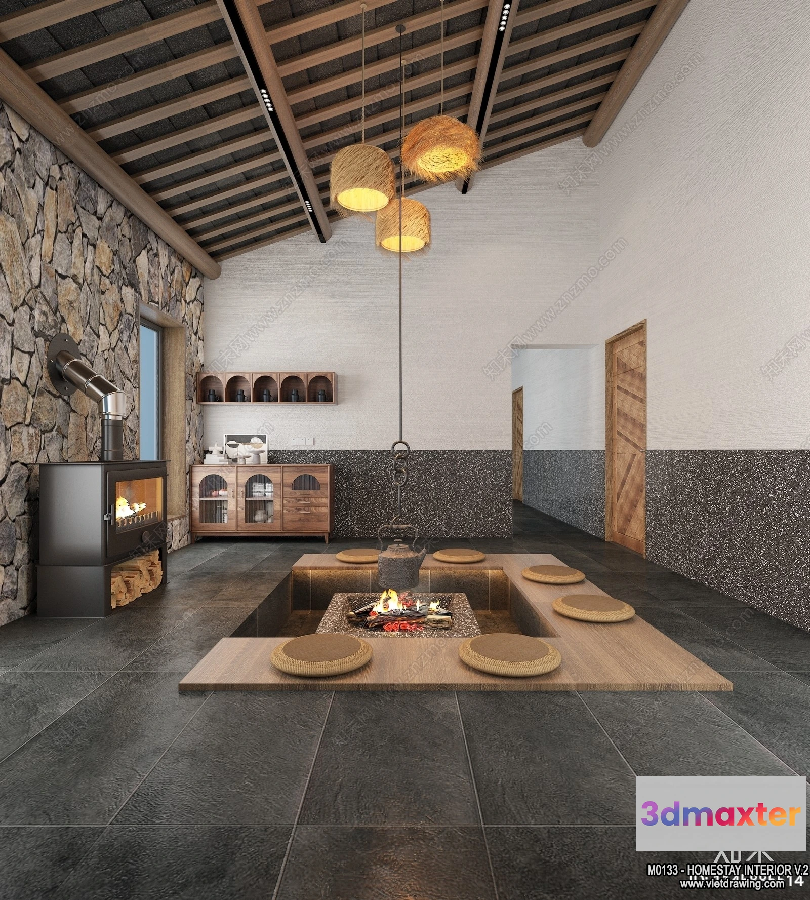 3D Models / 3D Scenes / Interior / Commercial Spaces / Homestay 3D Interior Scene – 3D Models – 161 3D Max