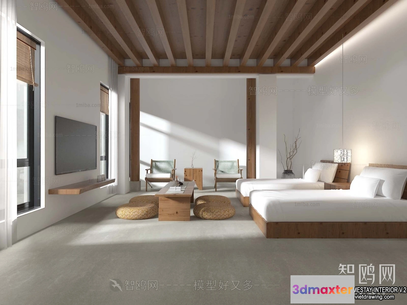 3D Models / 3D Scenes / Interior / Commercial Spaces / Homestay 3D Interior Scene – 3D Models – 210 3D Max