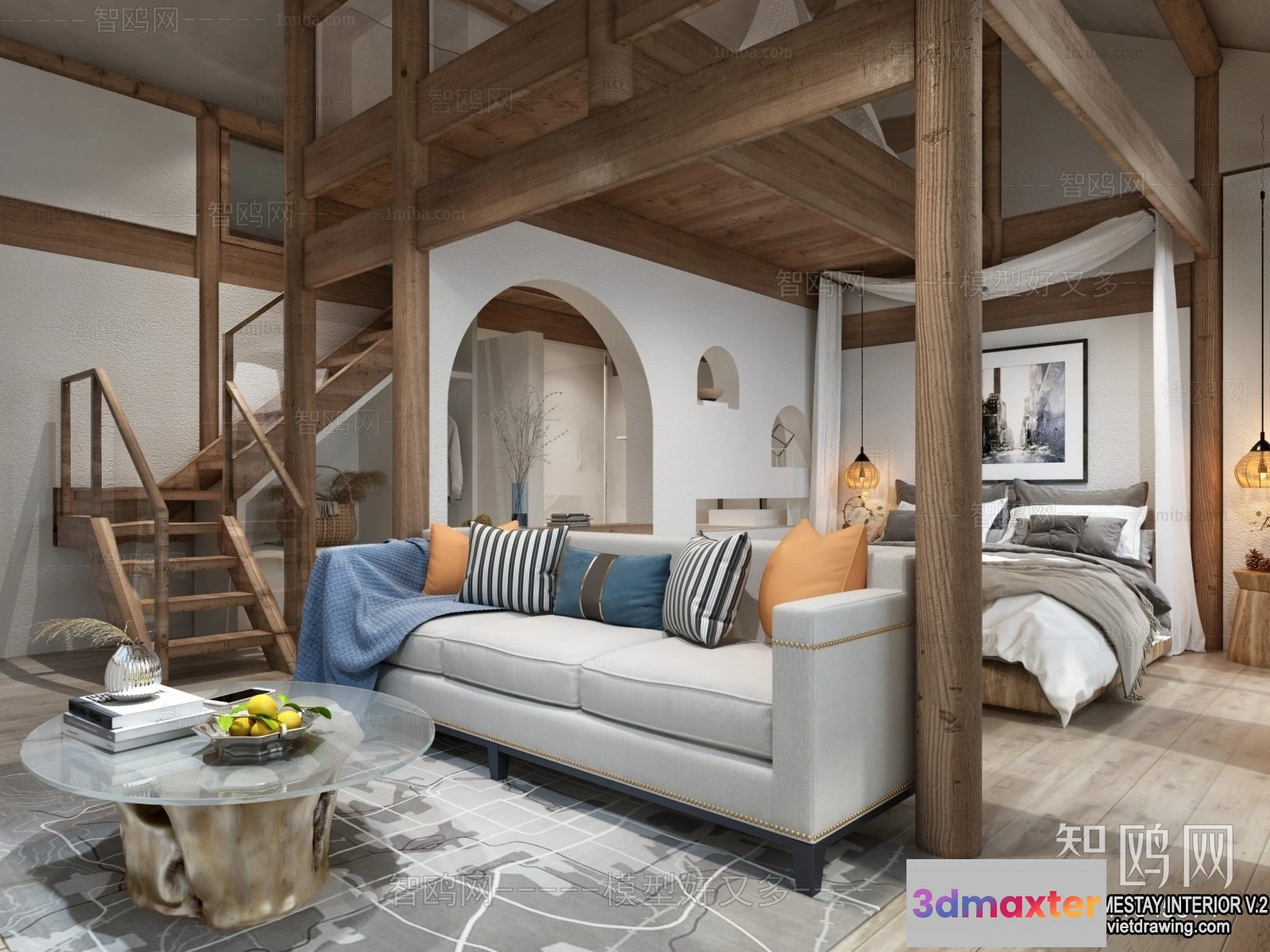 - Name: Homestay 3D Interior Scene – 3D Models – 211