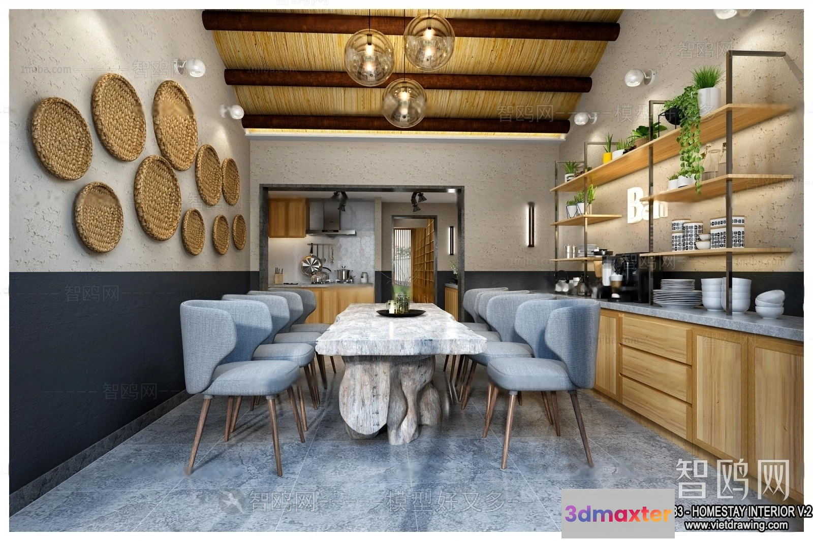 3D Models / 3D Scenes / Interior / Commercial Spaces / Homestay 3D Interior Scene – 3D Models – 262 3D Max