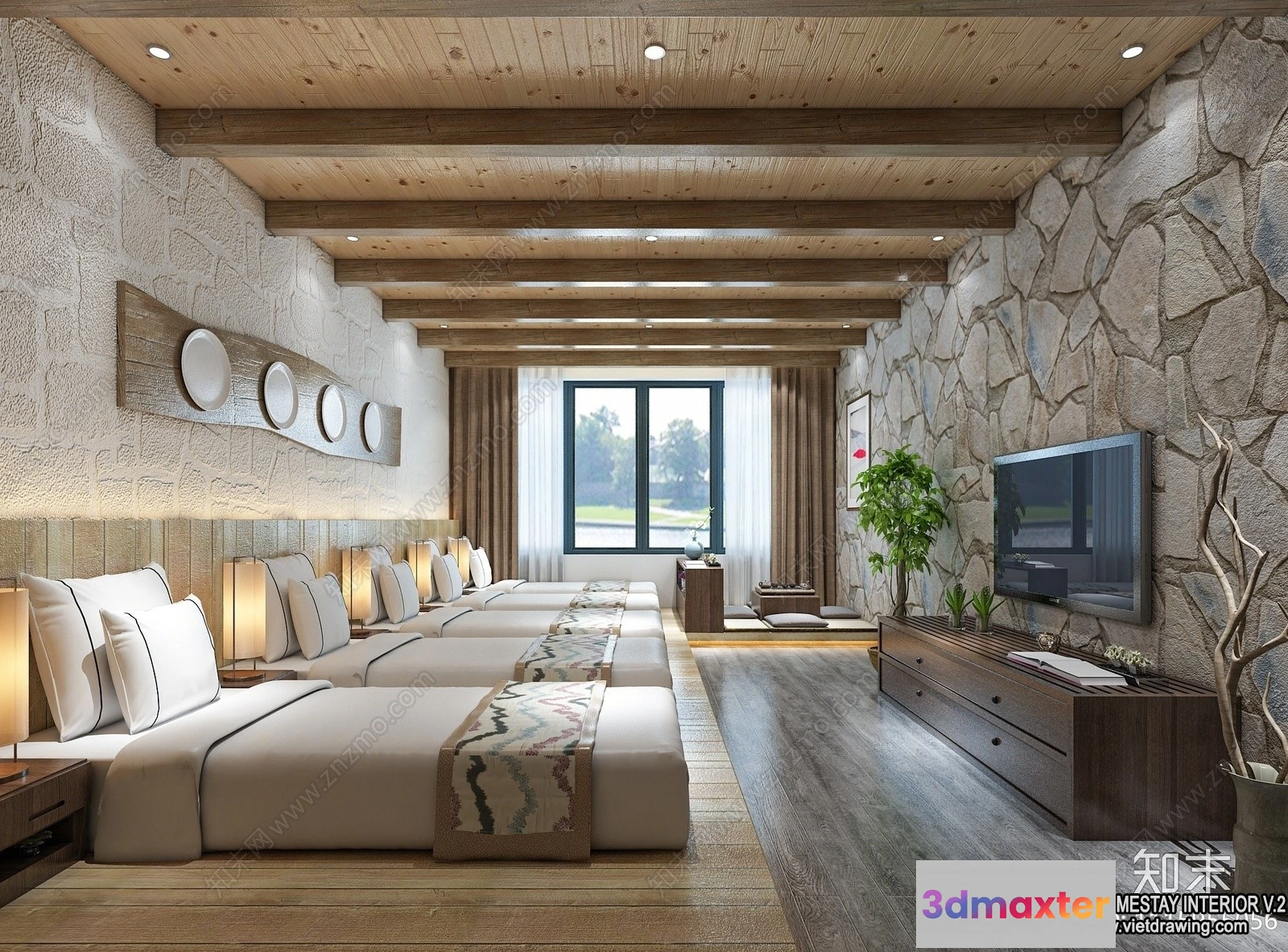 3D Models / 3D Scenes / Interior / Commercial Spaces / Homestay 3D Interior Scene – 3D Models – 280 3D Max