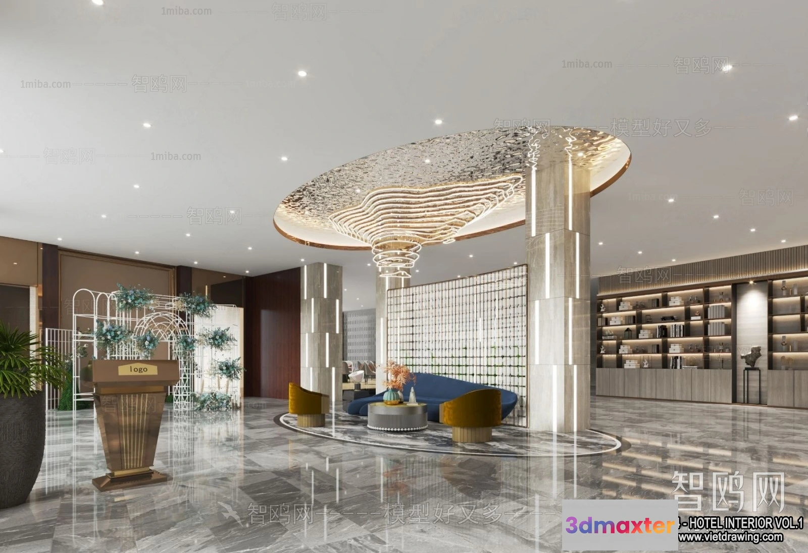 - Name: Hotel – Lobby – 3D Interior Scene – 3D Models – 419