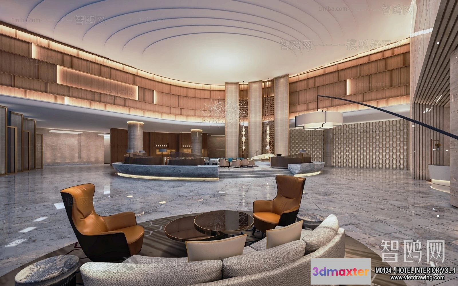 3D Models / 3D Scenes / Interior / Commercial Spaces / Hotel – Lobby – 3D Interior Scene – 3D Models – 423 3D Max