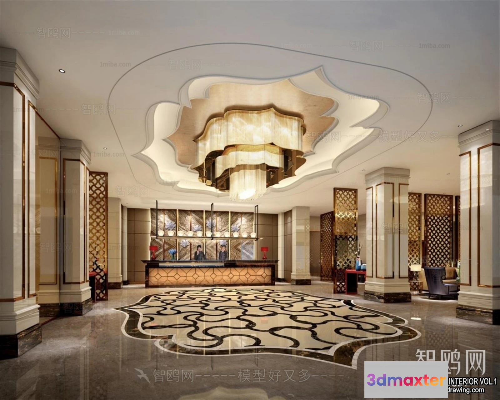 3D Models / 3D Scenes / Interior / Commercial Spaces / Hotel – Lobby – 3D Interior Scene – 3D Models – 455 3D Max