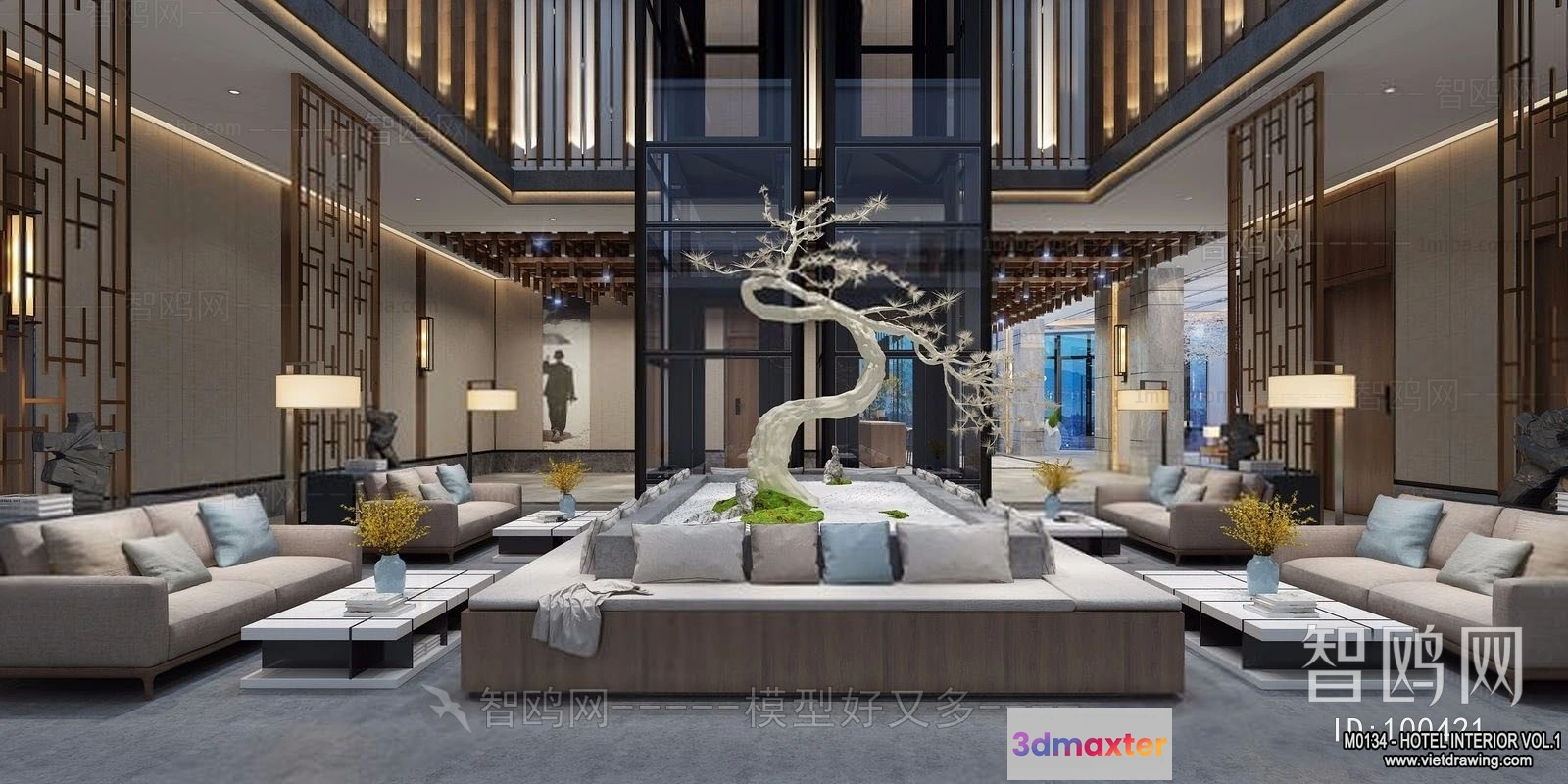 3D Models / 3D Scenes / Interior / Commercial Spaces / Hotel – Lobby – 3D Interior Scene – 3D Models – 460 3D Max