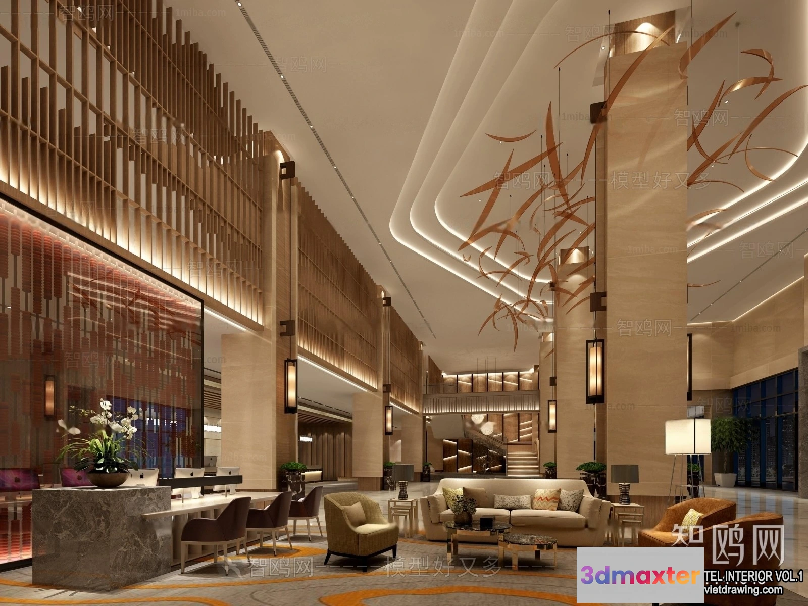 3D Models / 3D Scenes / Interior / Commercial Spaces / Hotel – Lobby – 3D Interior Scene – 3D Models – 466 3D Max