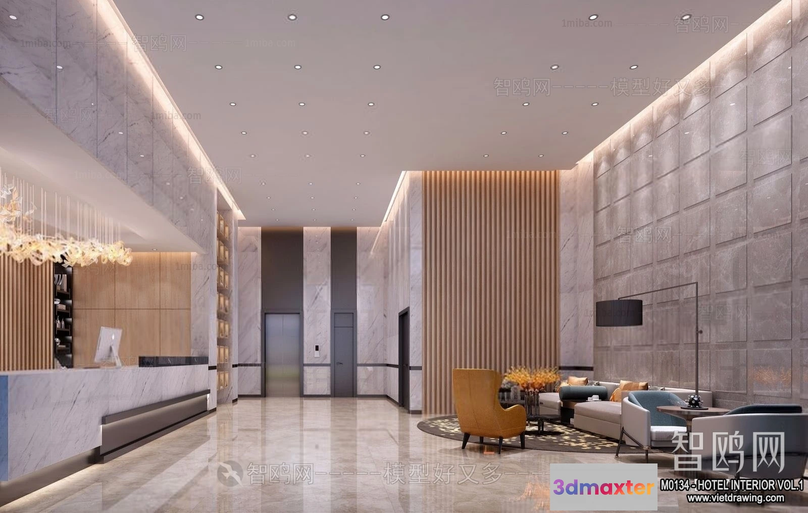 3D Models / 3D Scenes / Interior / Commercial Spaces / Hotel – Lobby – 3D Interior Scene – 3D Models – 473 3D Max